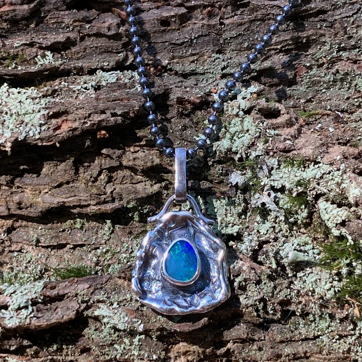 opal pendant – Argentium silver wax seal – antique - Image 5
