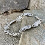 Argentium silver (940) contains a touch of germanium, so it’s brighter, harder, and tarnish-resistant. It’s always nickel-free and hypoallergenic. To care for your bracelet, wash with mild soap and water, pat dry with a soft cloth, and store separately to protect the texture.