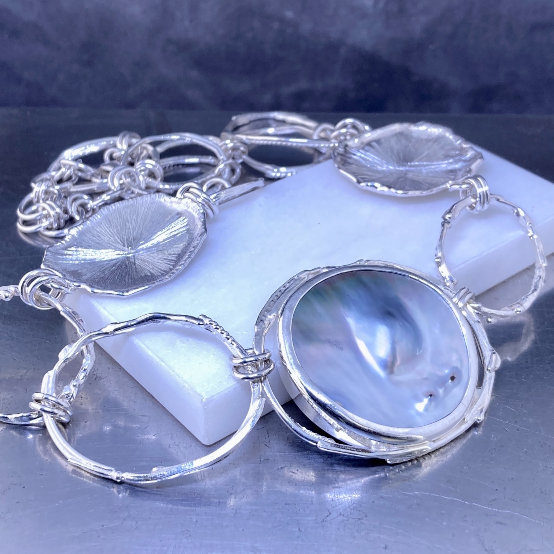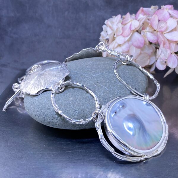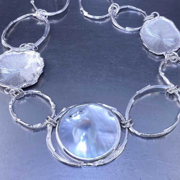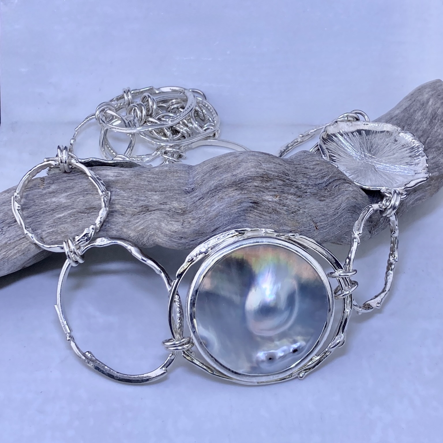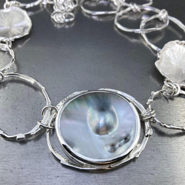 pearl blister necklace – freeform circle Argentium Silver