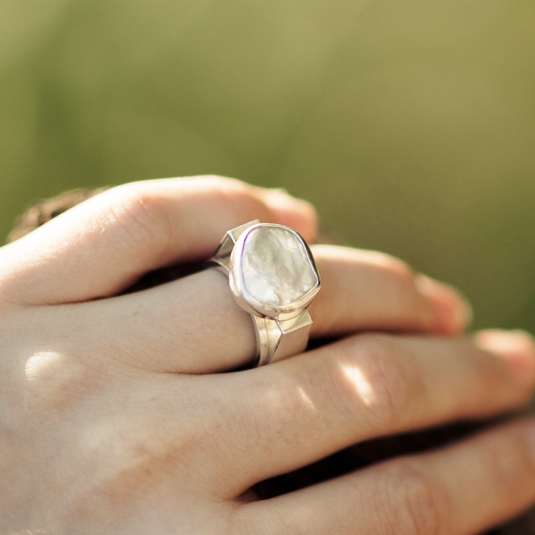 Design & Feel – Keshi Pearl Argentium Silver Ring