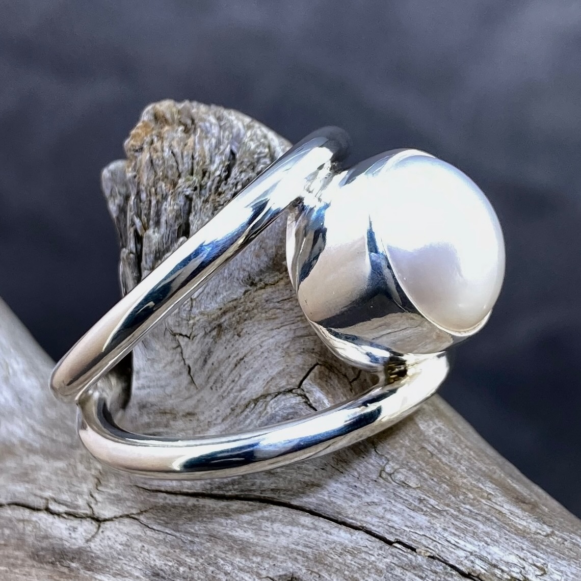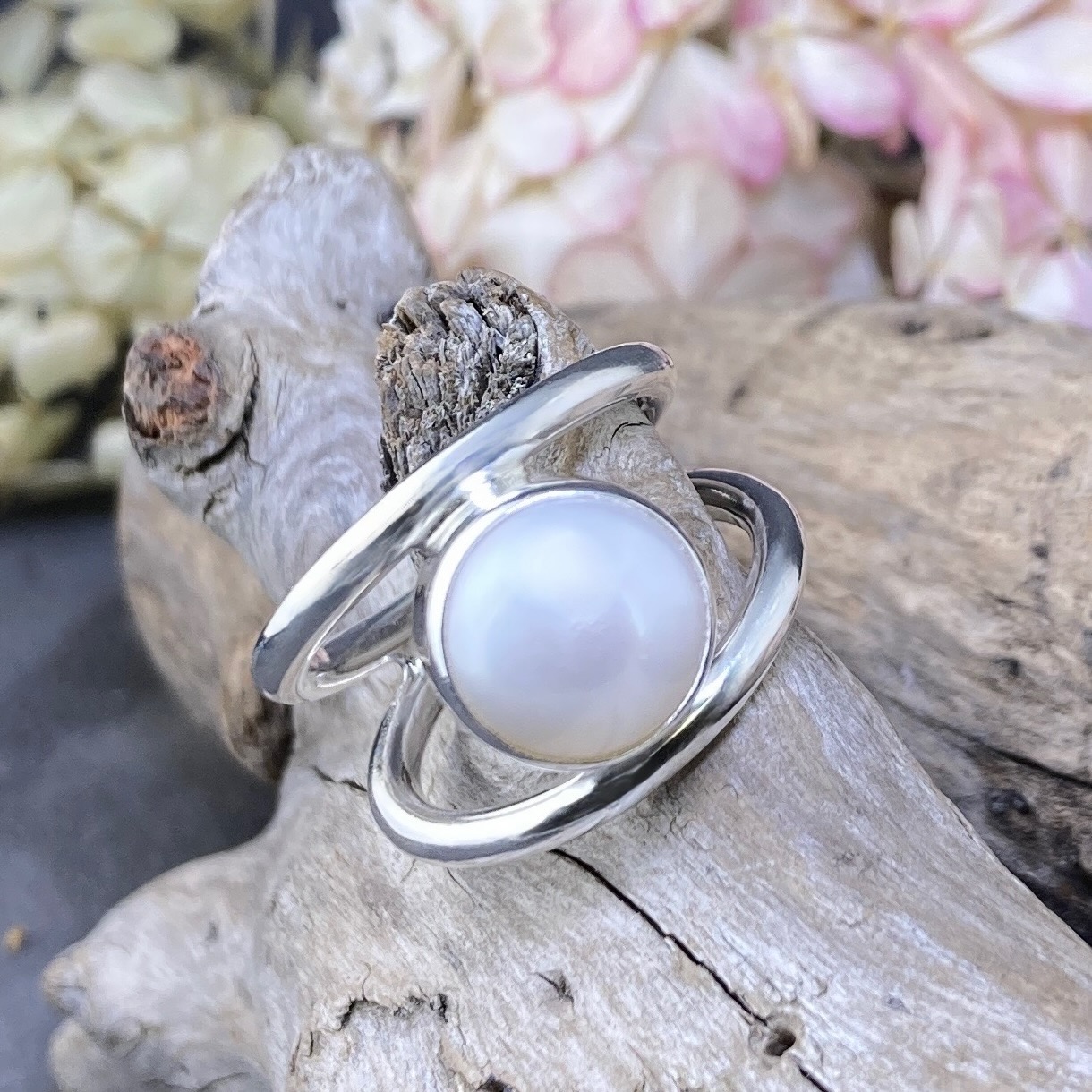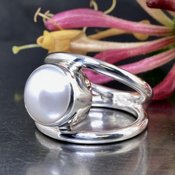 pearl ring – size 9.25 – Argentium round double-band – 5 carat