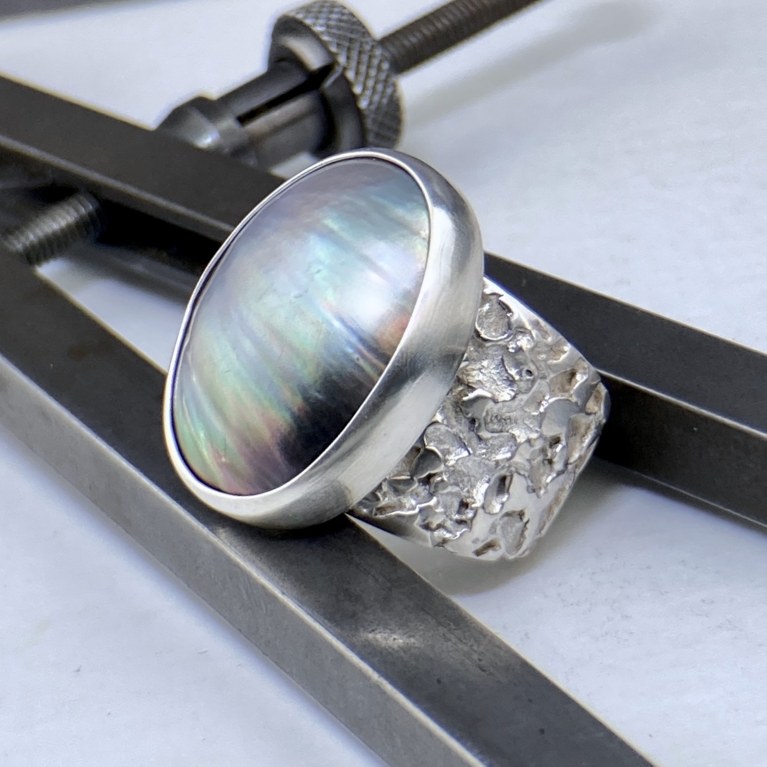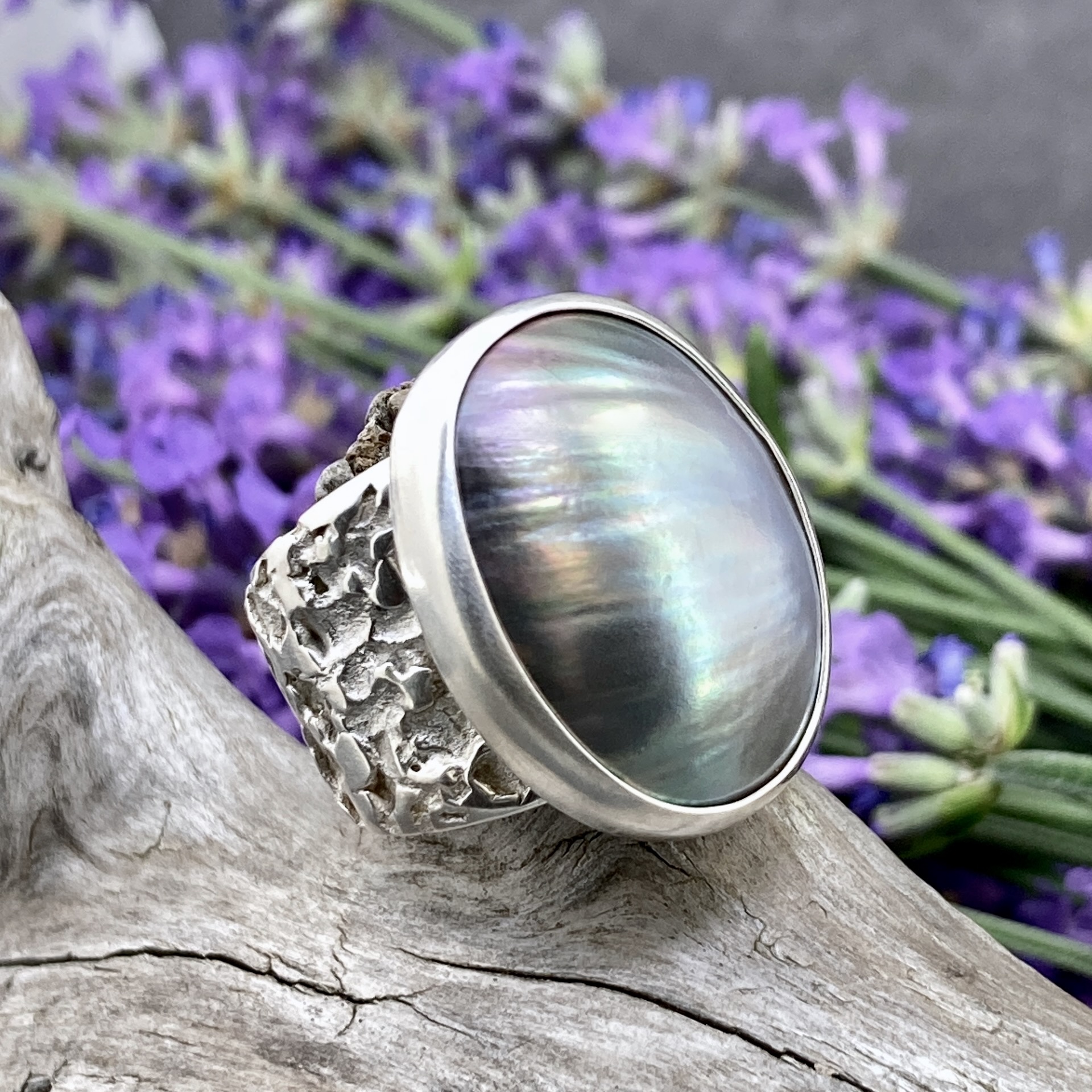 Crafted in Argentium 940 silver — bright, tarnish-resistant, and nickel-free. To care for this ring, wipe gently with a soft, dry cloth. Avoid sprays, perfumes, or chemical dips that can harm the pearl’s surface. Learn more: