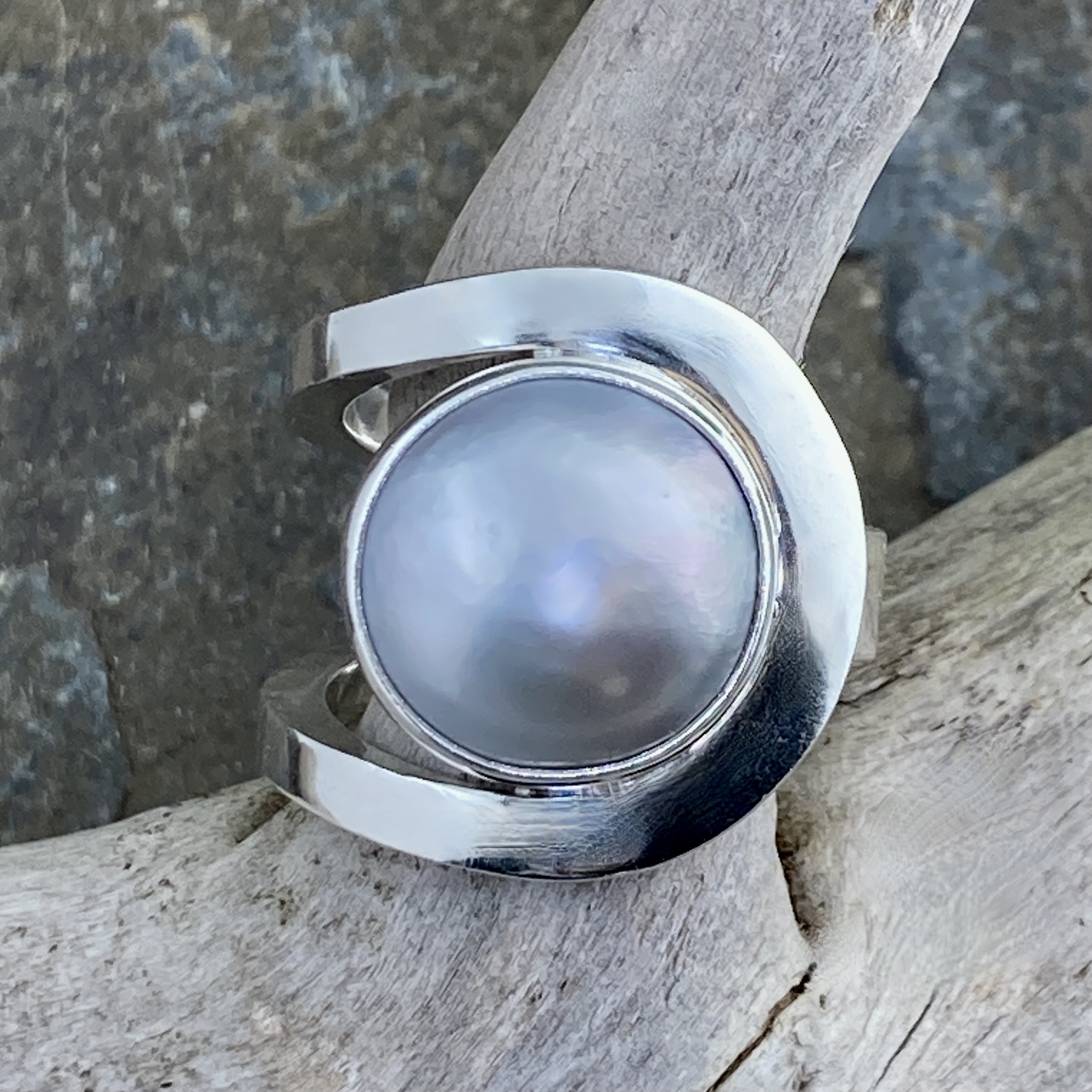 Made in Argentium 940 silver — bright, tarnish-resistant, and nickel-free. The Buttonhole band enhances the pearl’s natural shape while maintaining structural strength. Learn more: