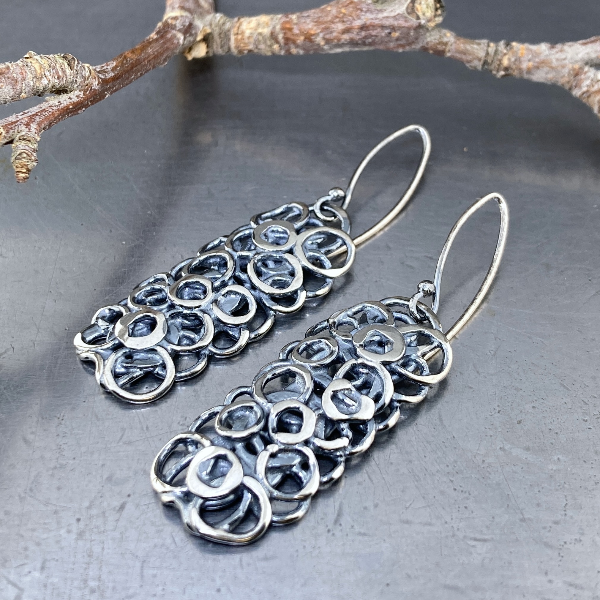 pebbles earrings - curved rectangle - antique Argentium silver - Image 3
