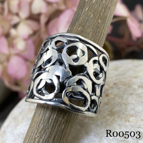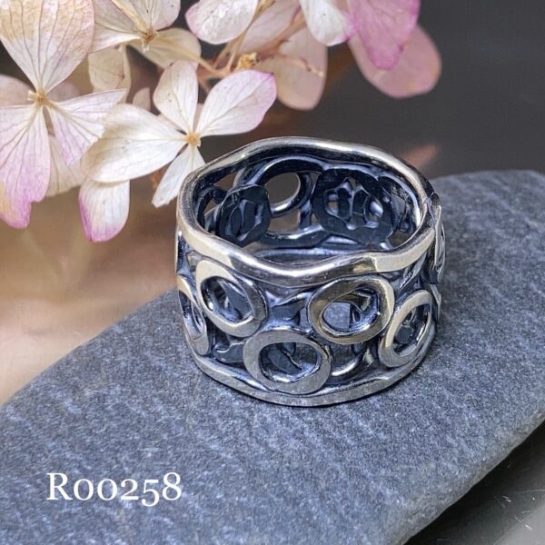 Pebbles Ring – Argentium Silver Finished Edge – Antique