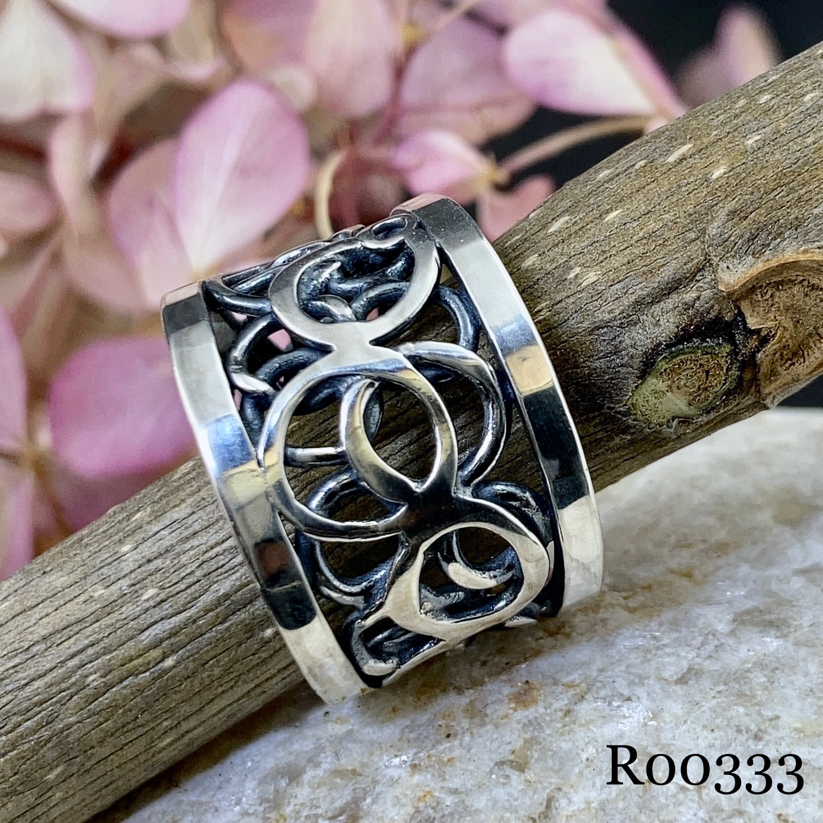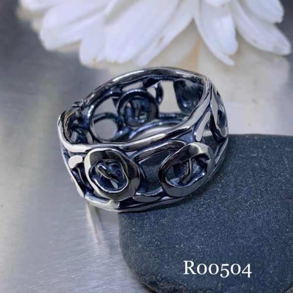 These rings come in sizes from 6.25 to 11. Each ring has its own pattern and edge line, so the fit feels personal.