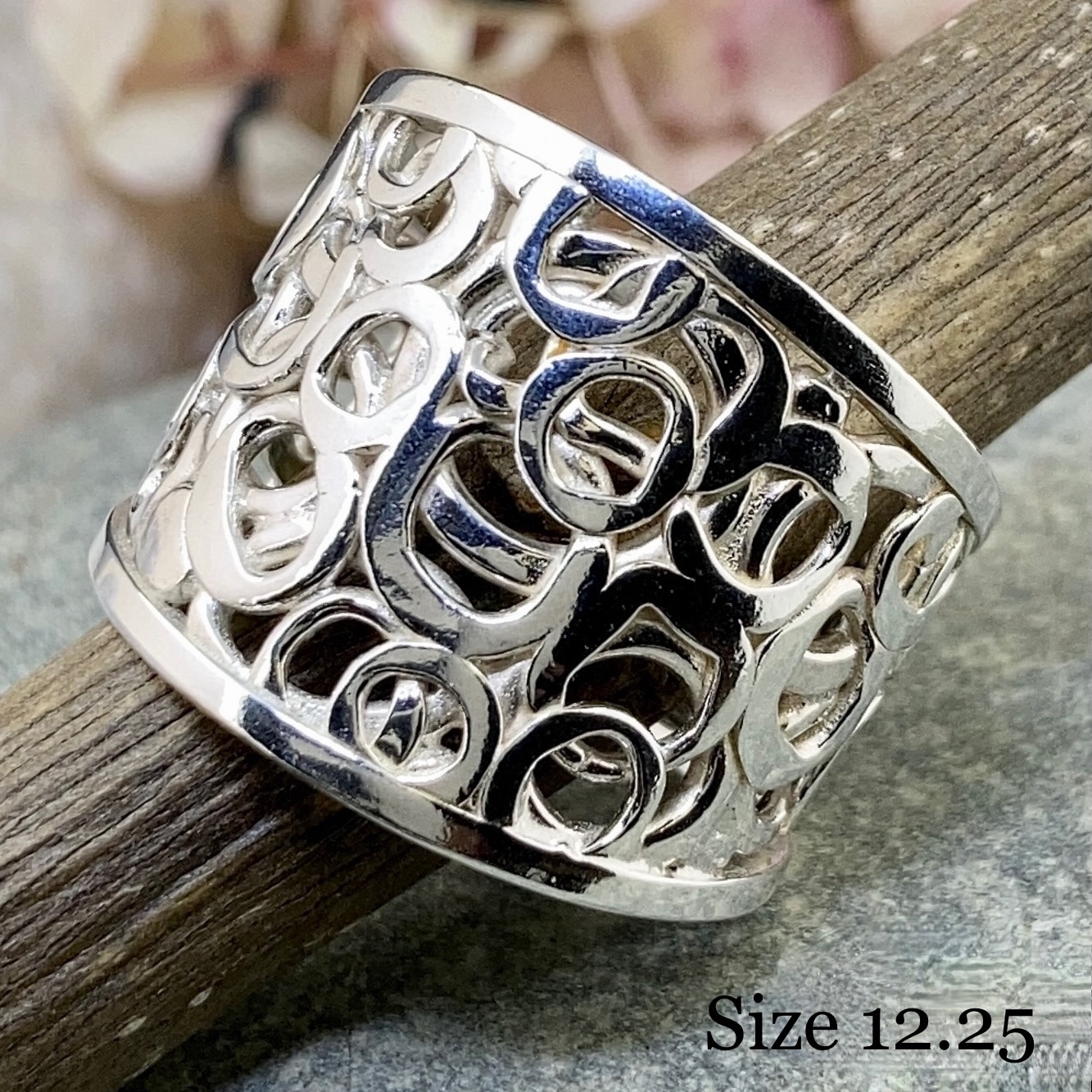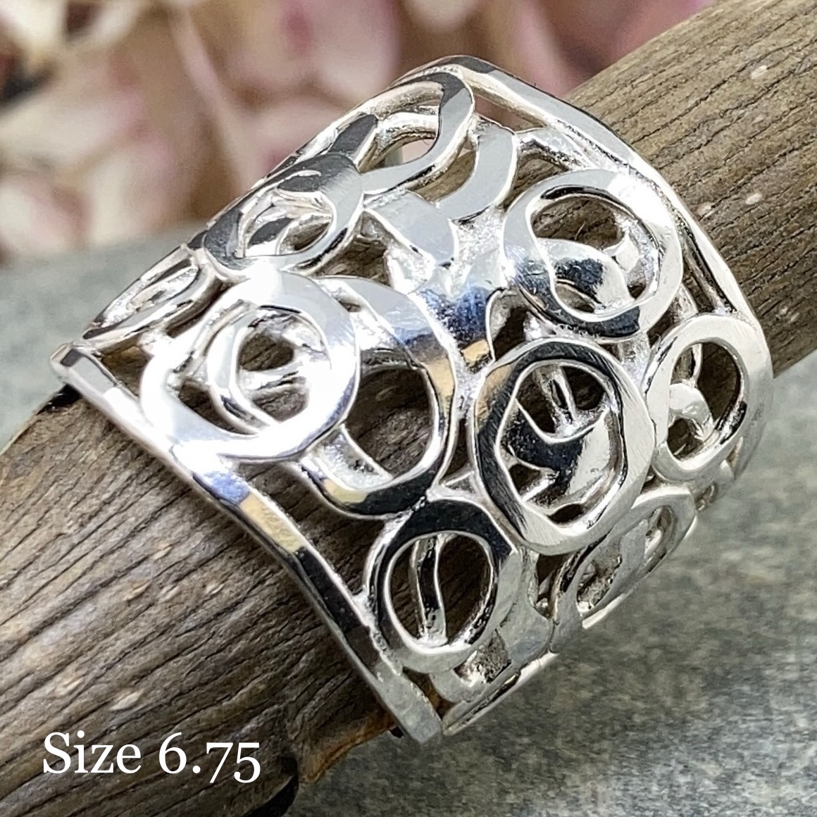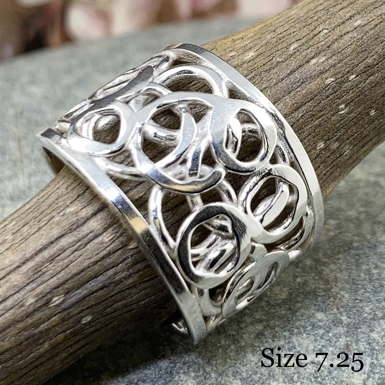 These rings are made as variable sizes. Width and weight vary because each ring has its own texture and finished edge.