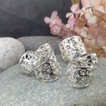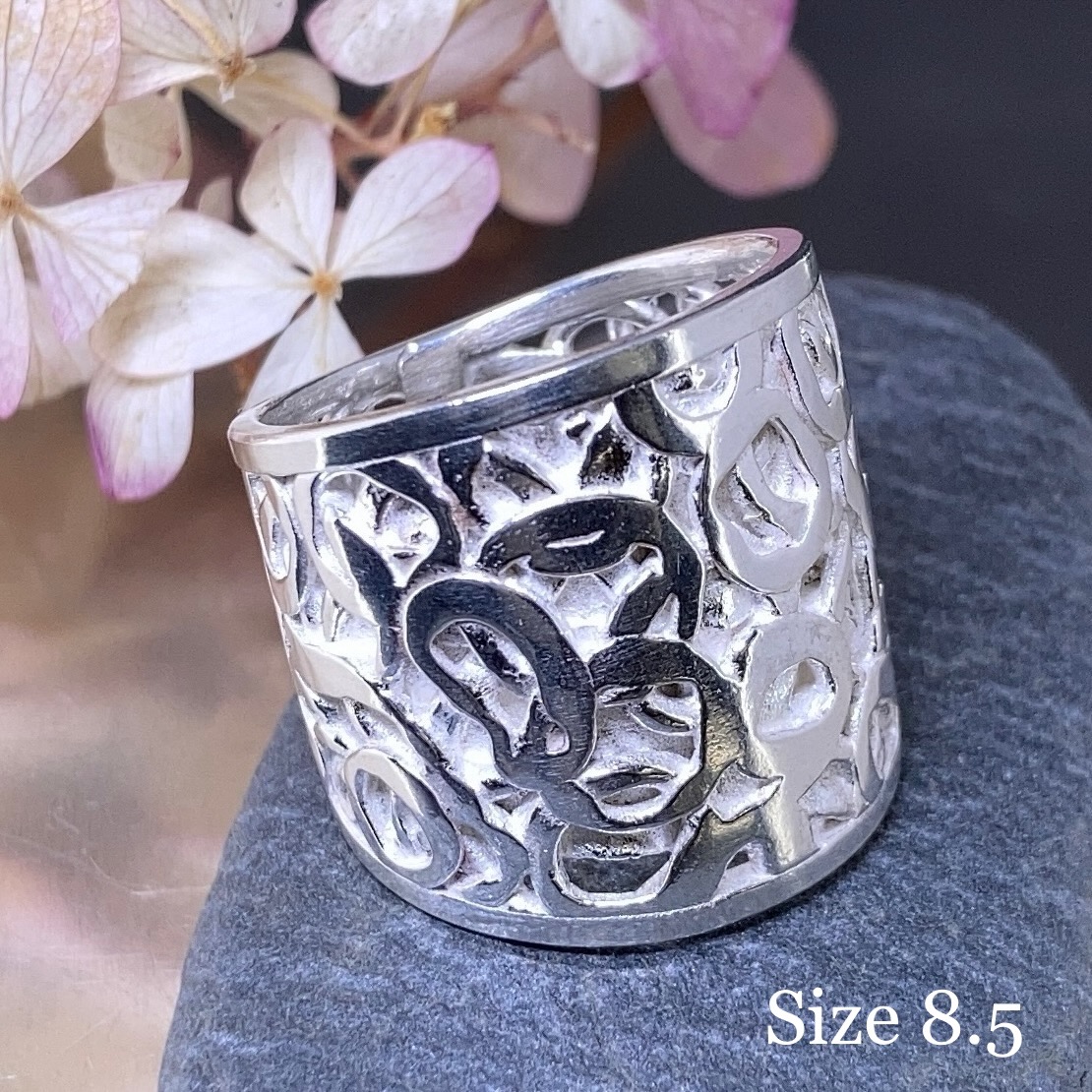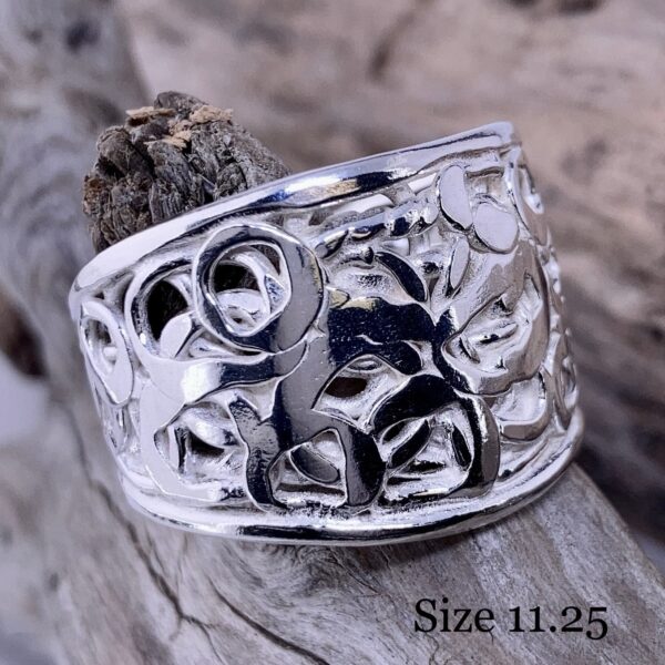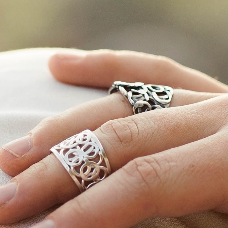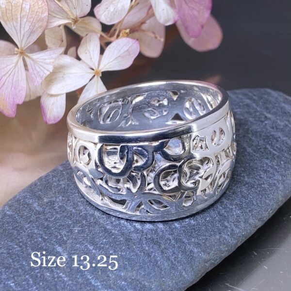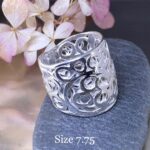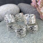 Because these rings use Argentium silver, I heat-treat each one to activate the germanium oxide layer. This step increases hardness and slows tarnish. After heat-hardening, I polish the surface to bring out the detail and shine.