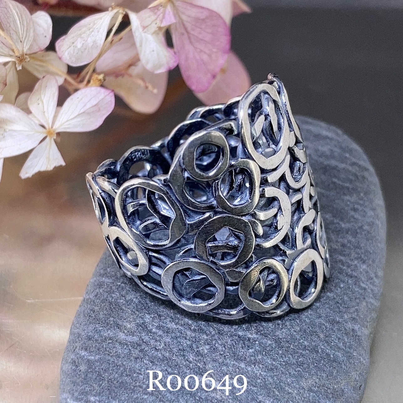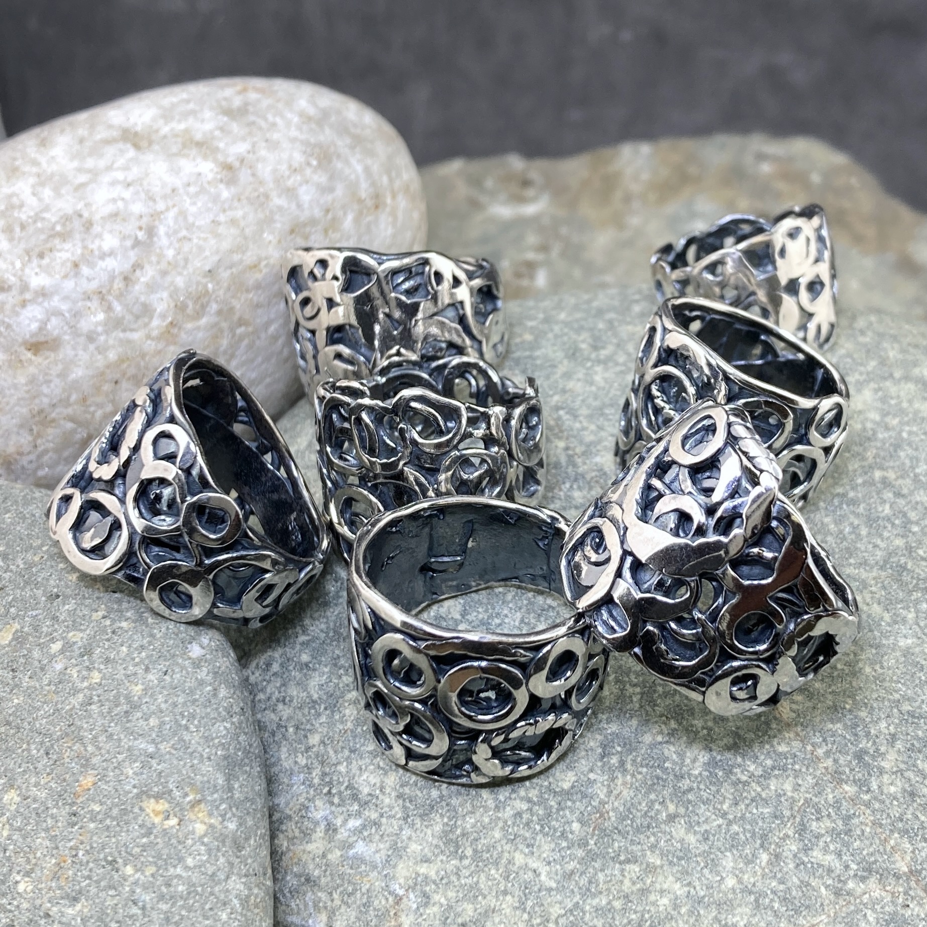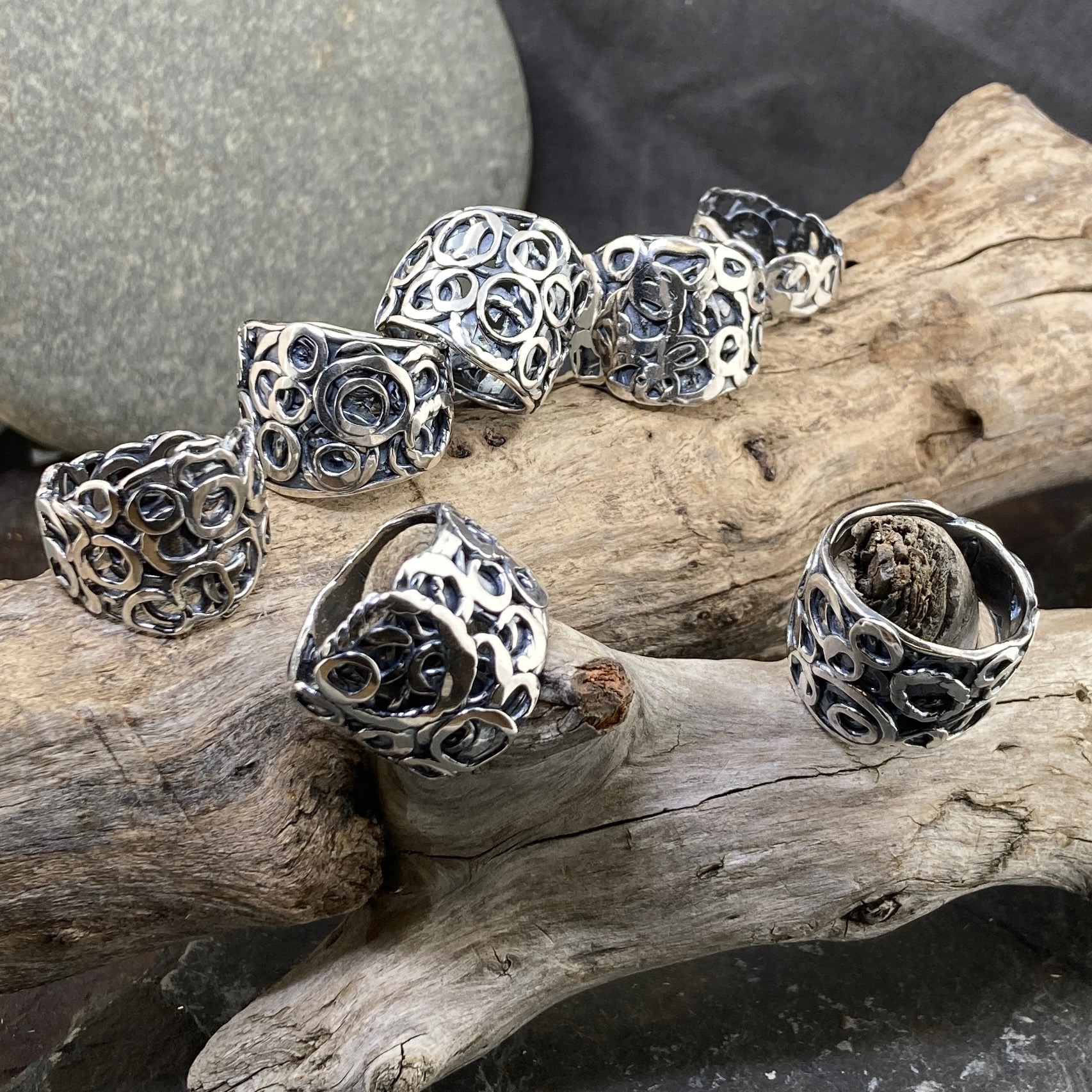 pebbles rings – Argentium silver – antique finish