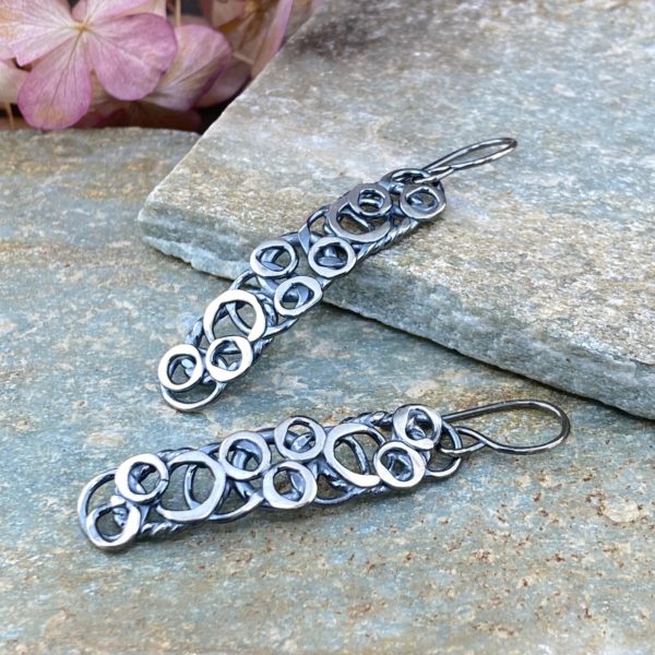 pebbles earrings – rectangle – antique Argentium silver