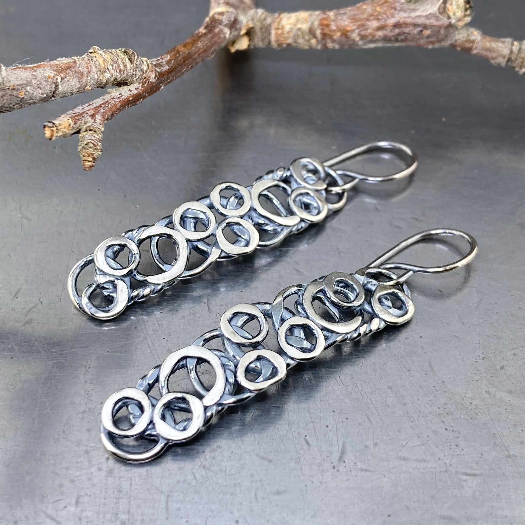 pebbles earrings – branch – Argentium silver