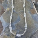 Necklace is 45.0 cm long by 0.8 cm wide. The weight is 29.8 grams.