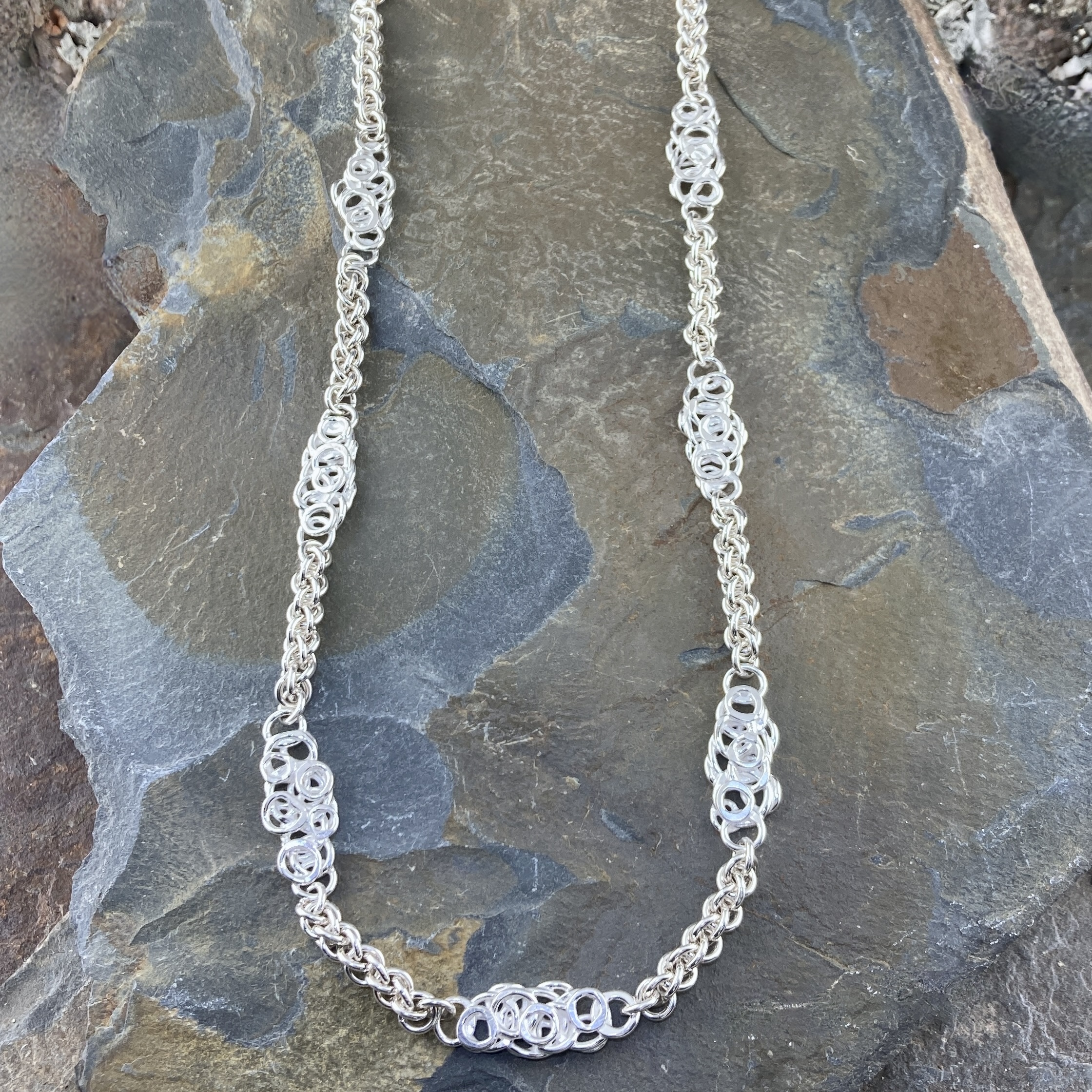 Pebbles panels with jen’s pind. Necklace is 15″ to 18″ long.