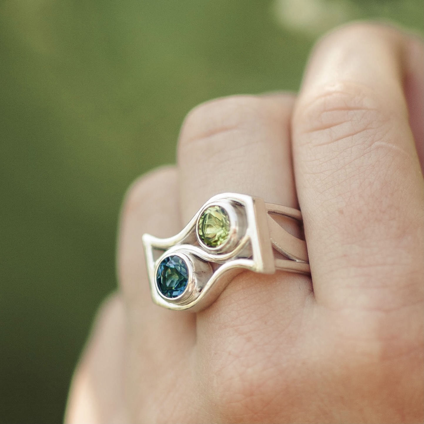Design & Feel – Peridot & London Blue Topaz Argentium Silver Ring