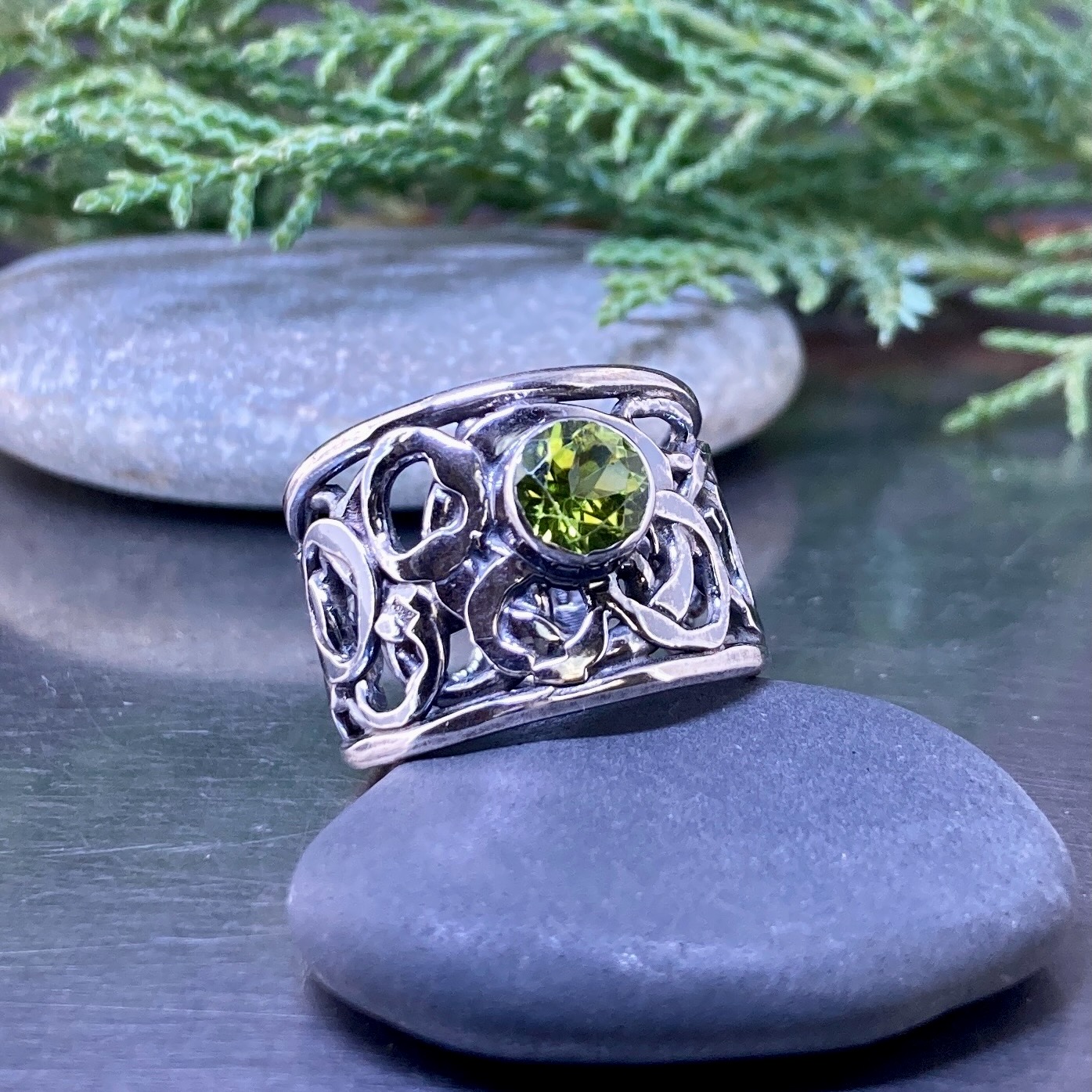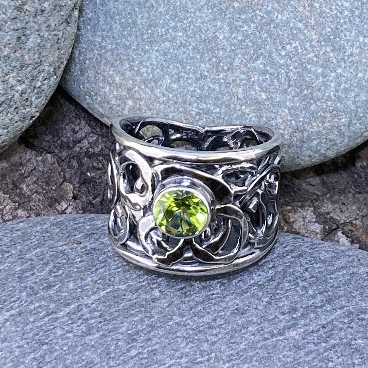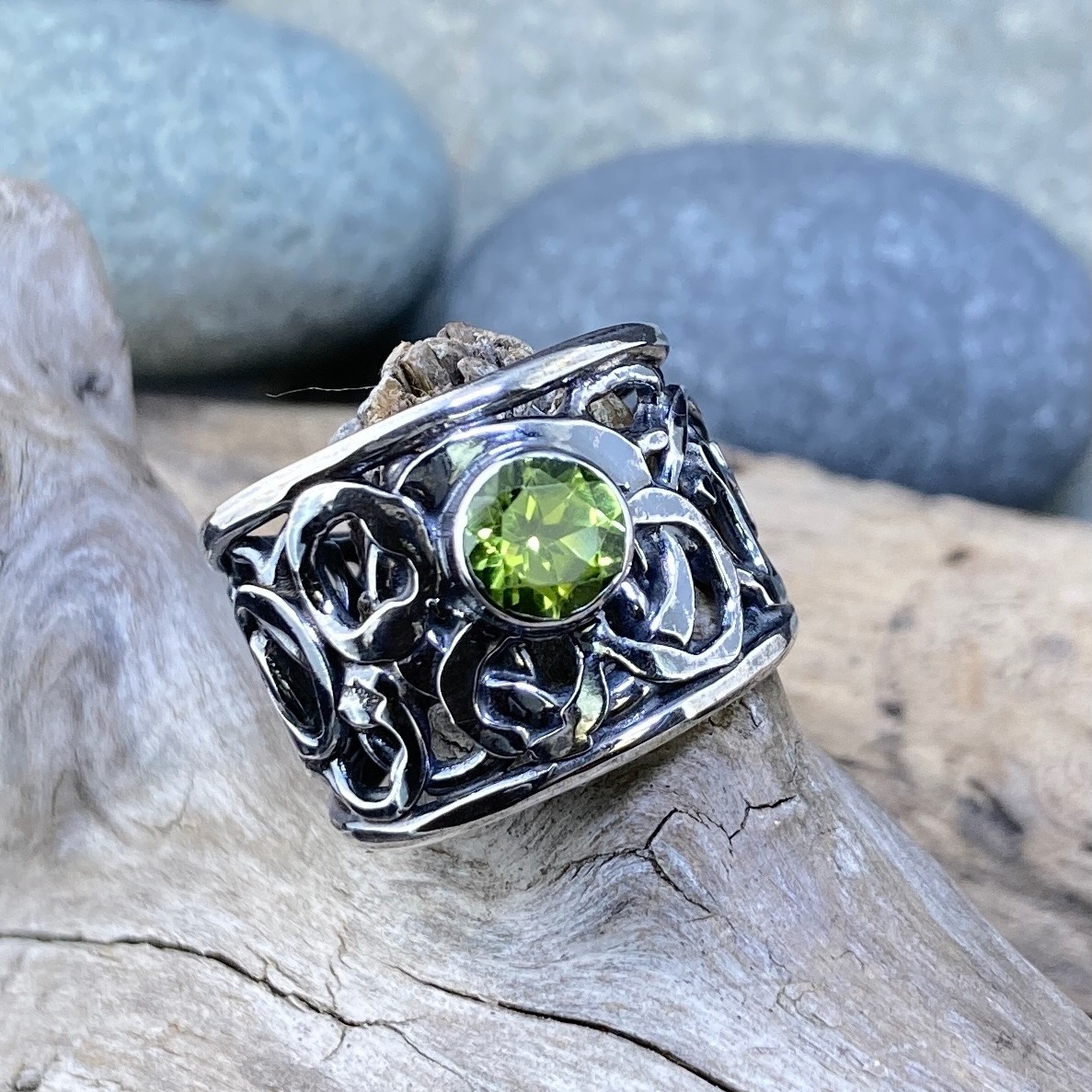 peridot ring – size 6.75 – Argentium silver pebbles – 1 carat