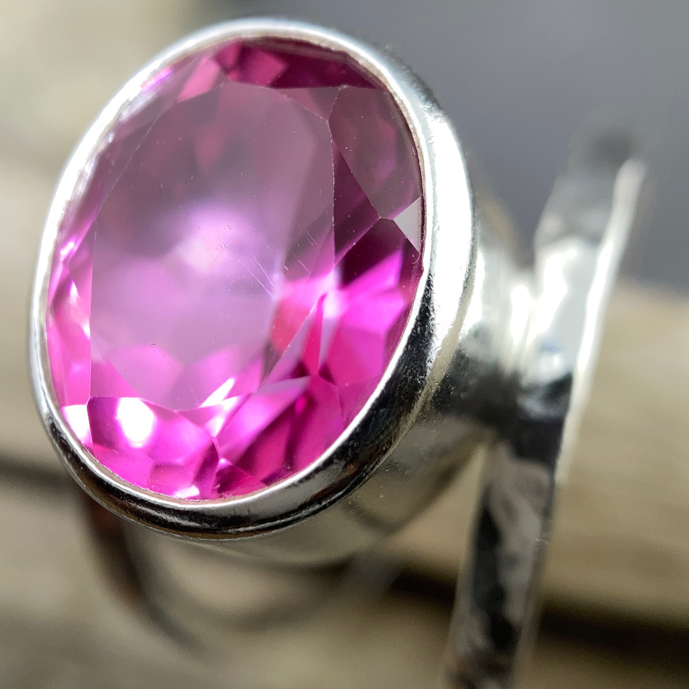 🔨 Pink Topaz, 10 carat oval bezel set