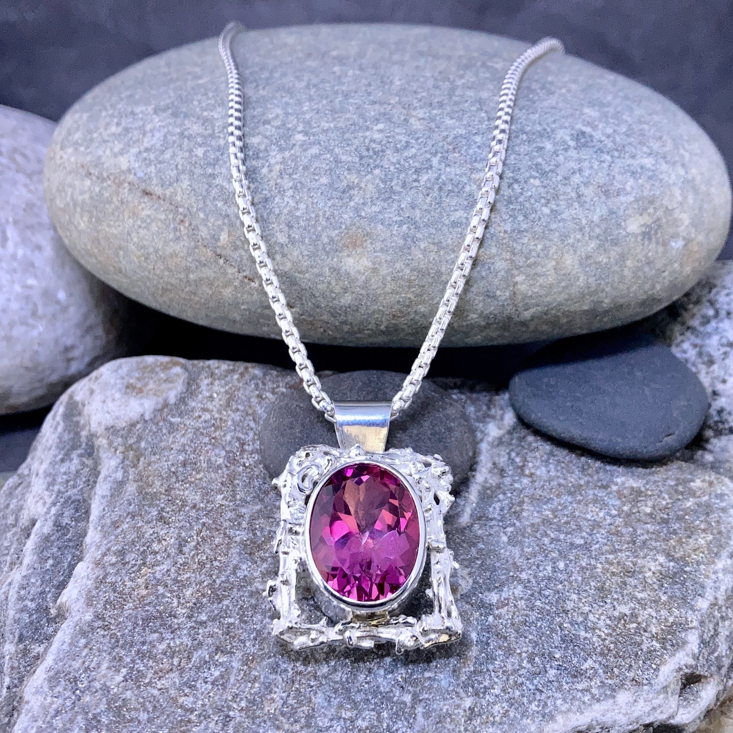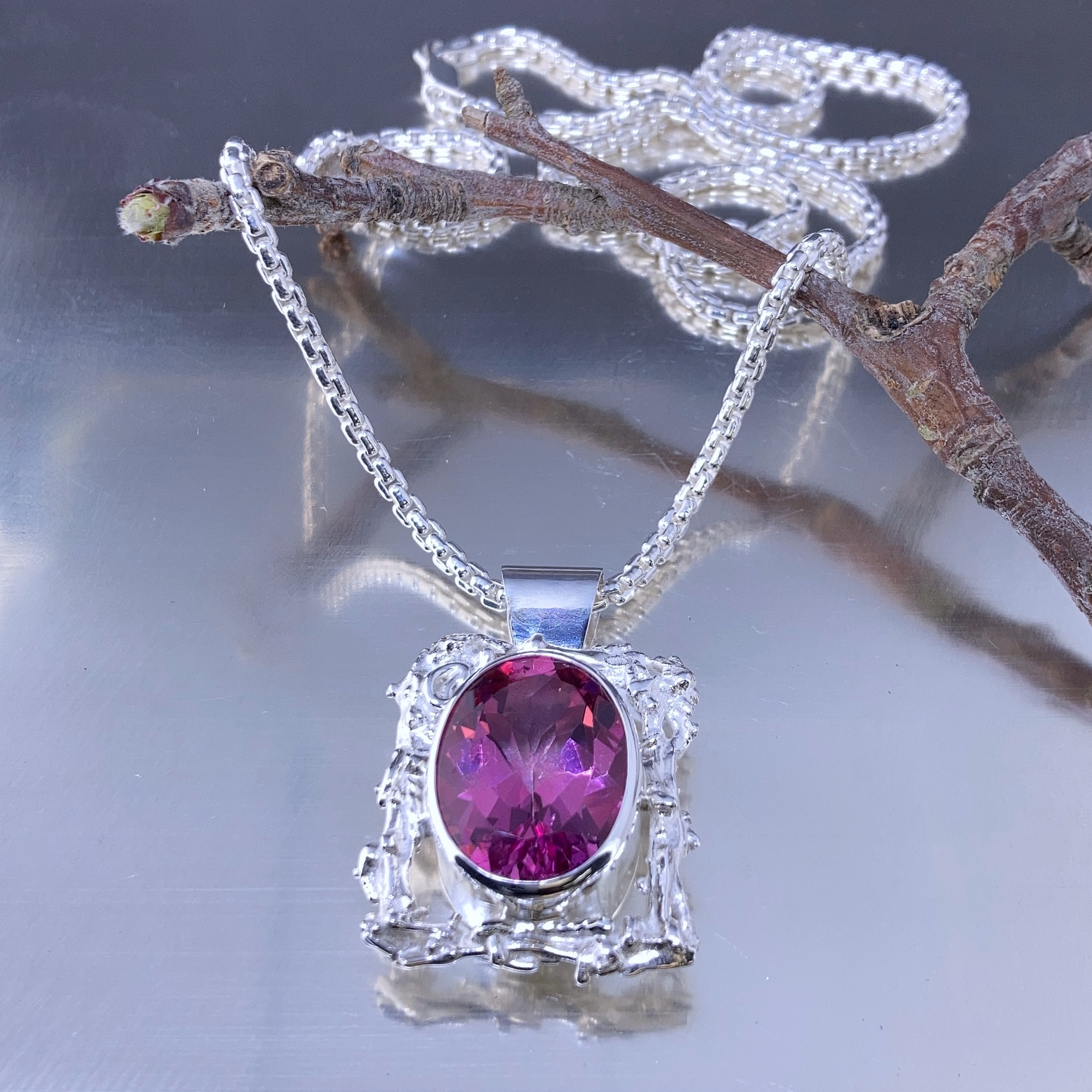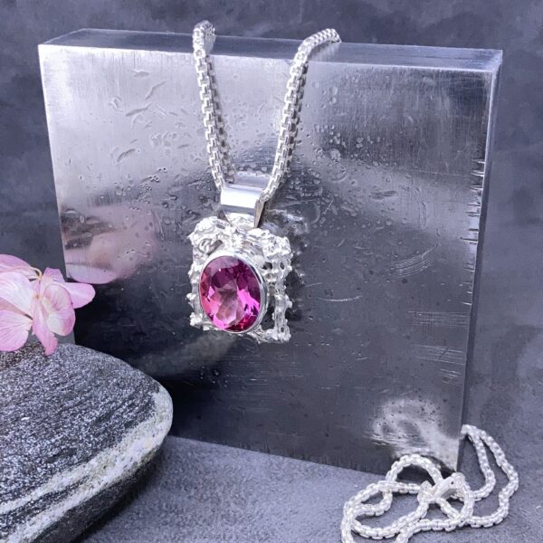 pink topaz pendant – Argentium silver twigs – 21.5 carat
