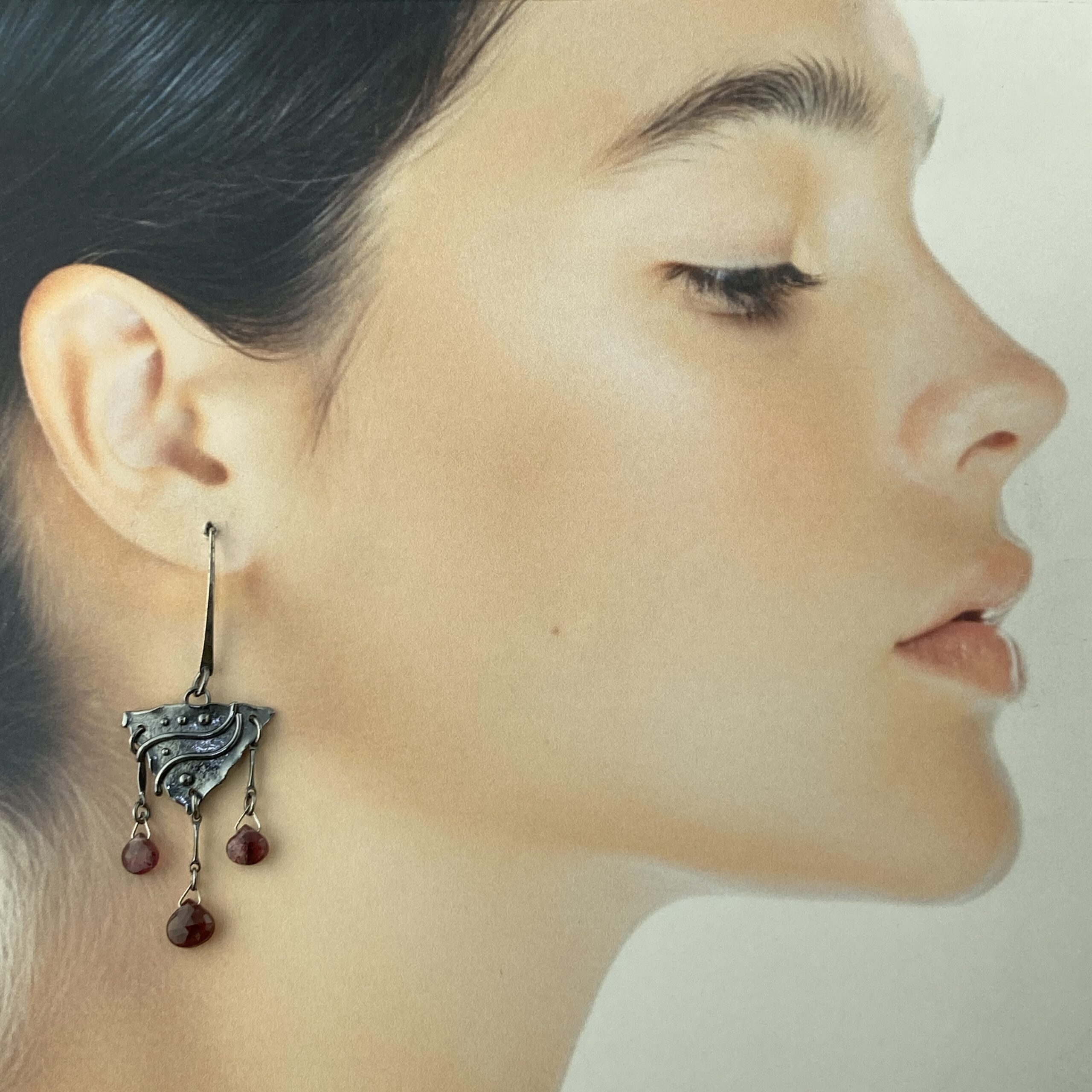 For a dangle earring I decide whether I will drill a hole for the ear wire, or solder on a connecting loop, with which to attach either ear wires or gemstone dangles.