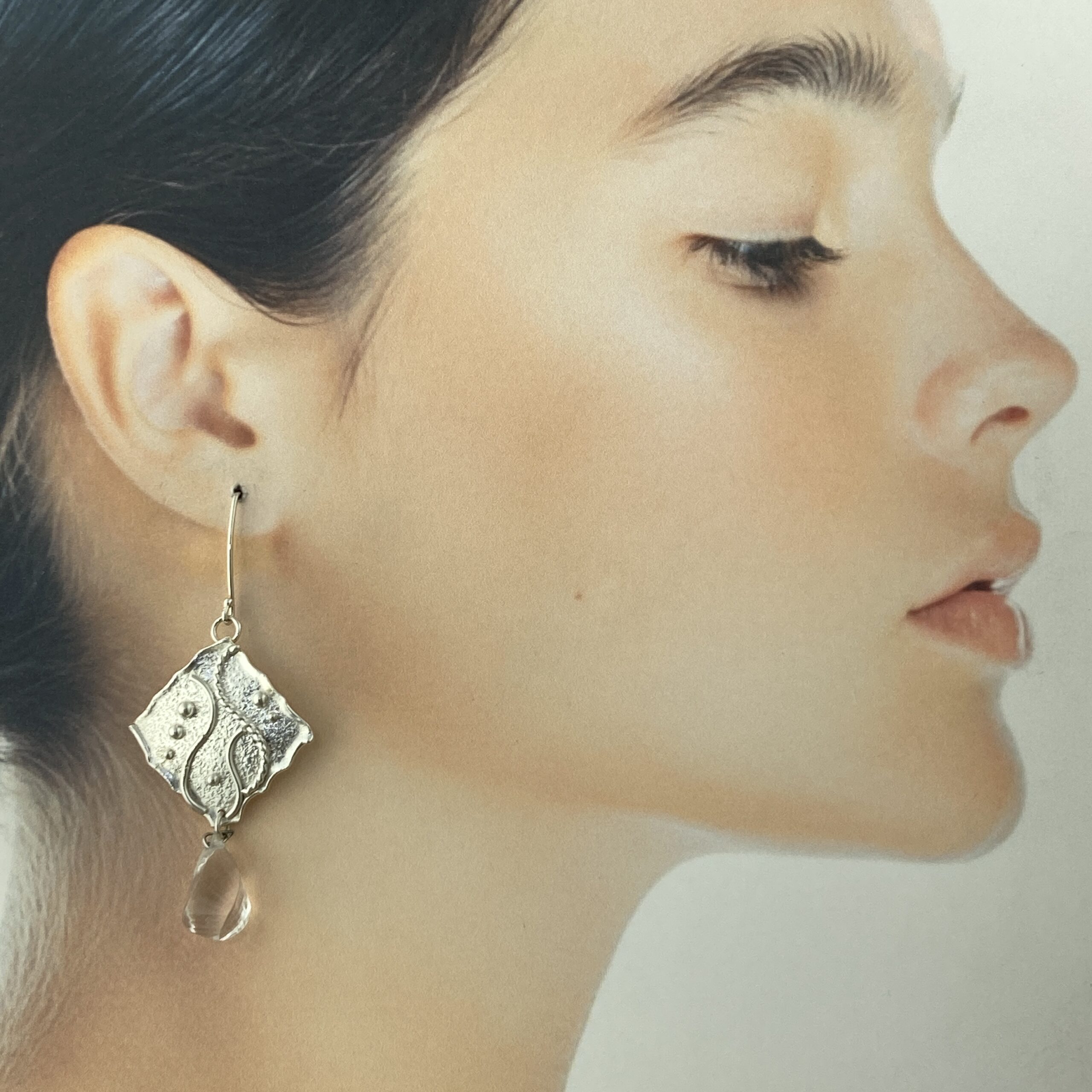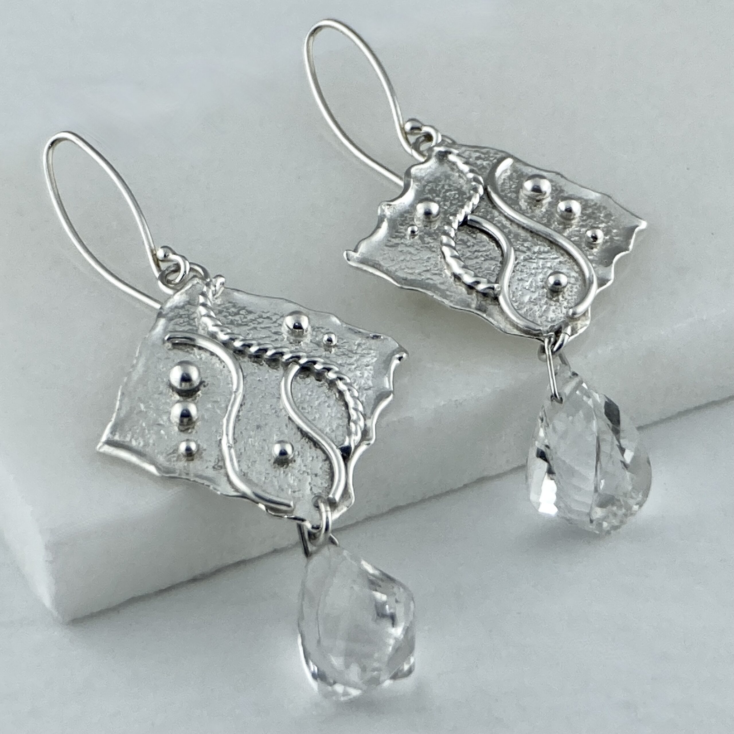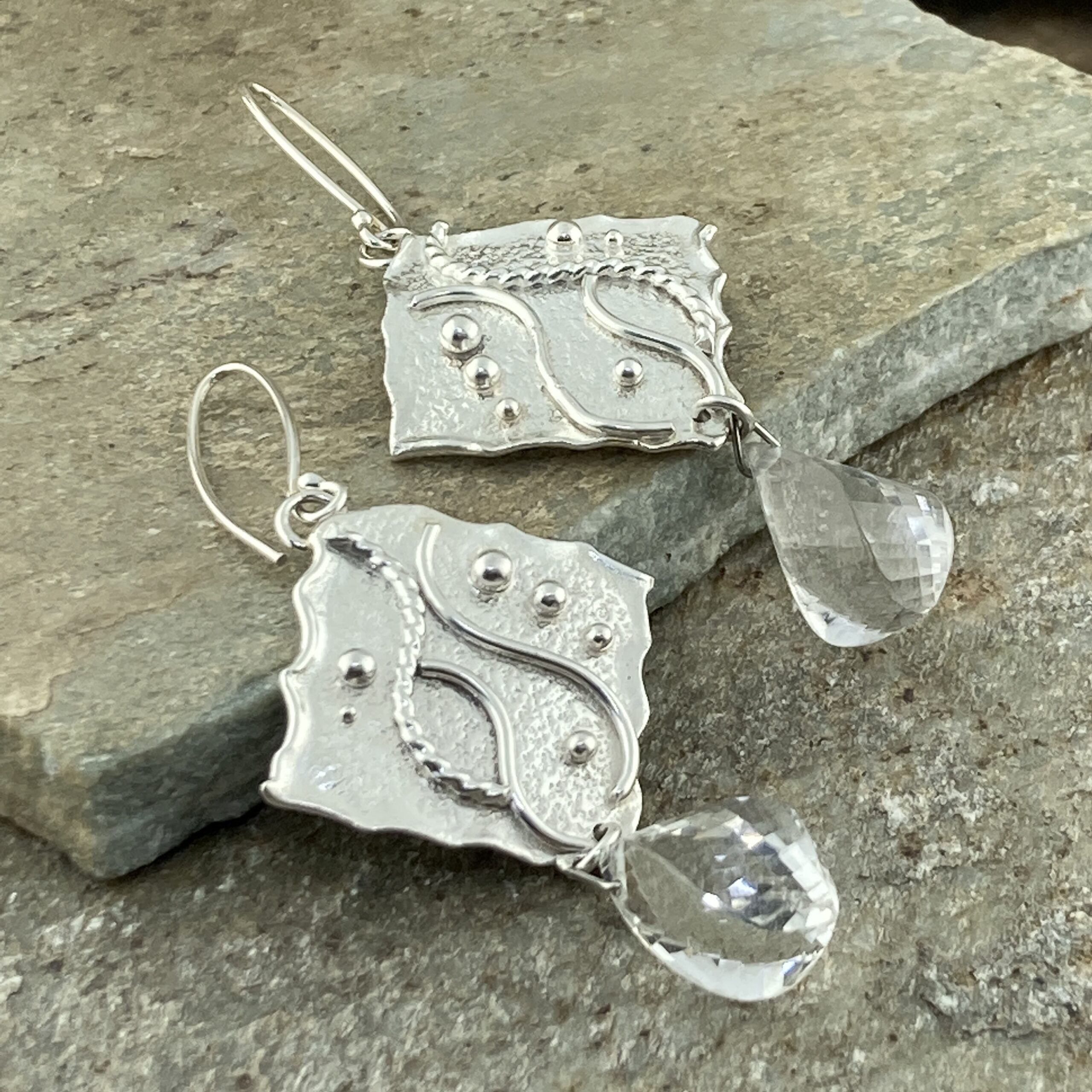 Accented with Quartz teardrops that have a facetted swirl cut.