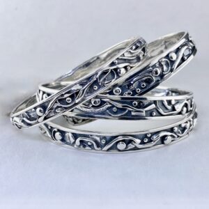In the WATER design group – these are the busy white waters – our Rapids design. I fuse layers and layers of Argentium silver to get this extreme texture. So beautiful and white!