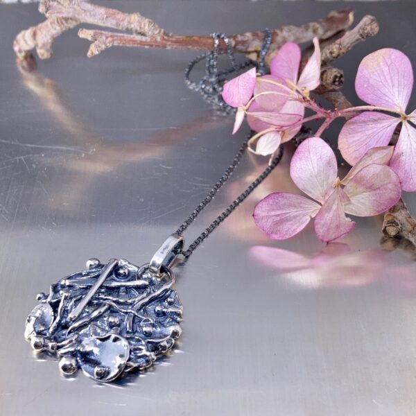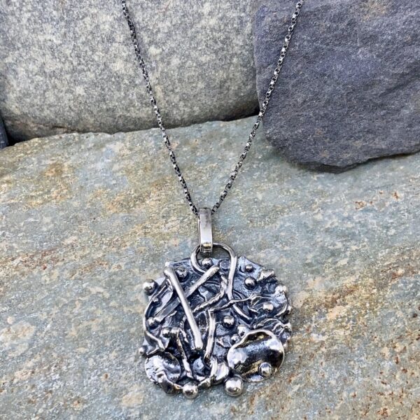 This is a Rapids design – the most turbulent of the Water designs. So much action and motion in a silver pendant. This one has a permanent antique finish and it never needs polishing.