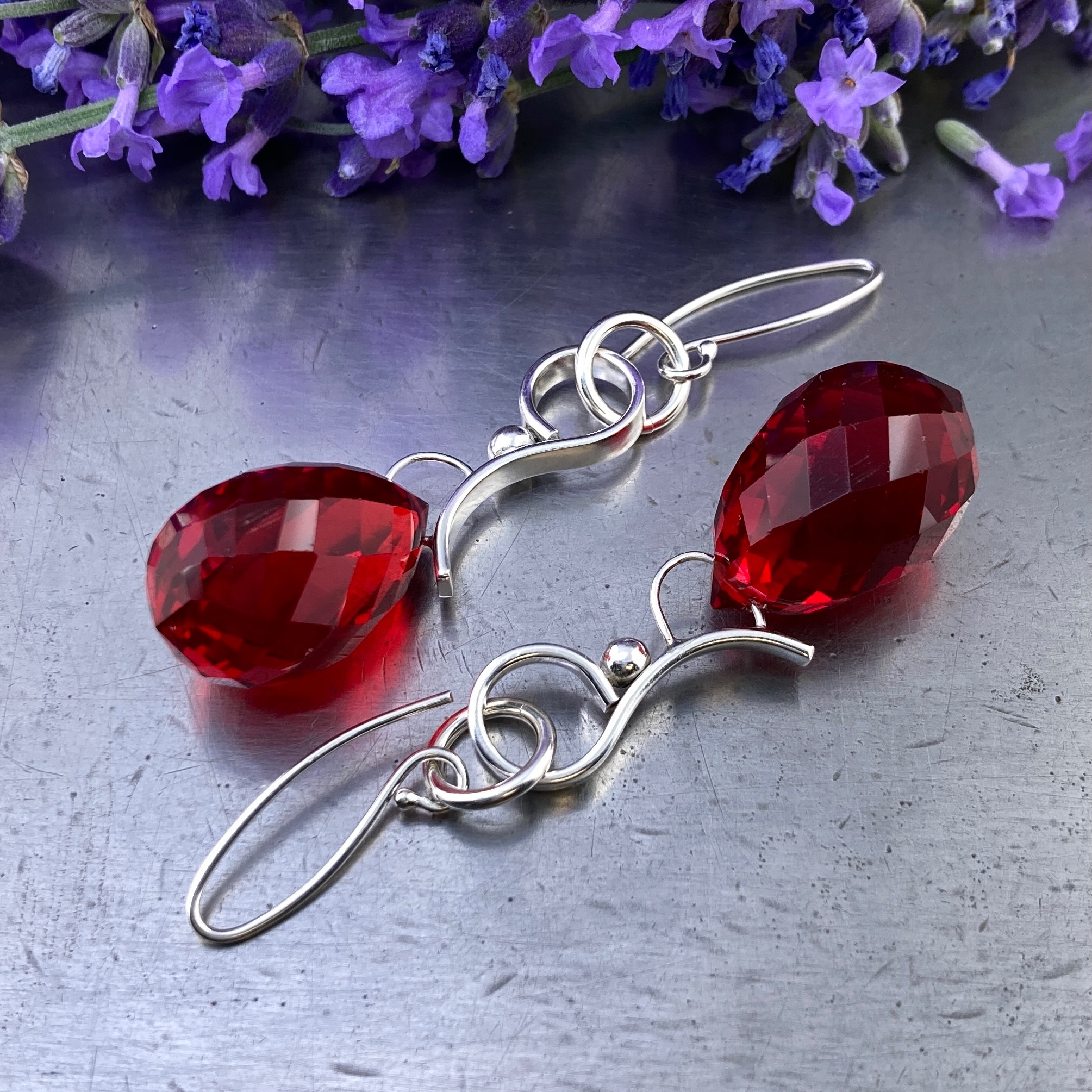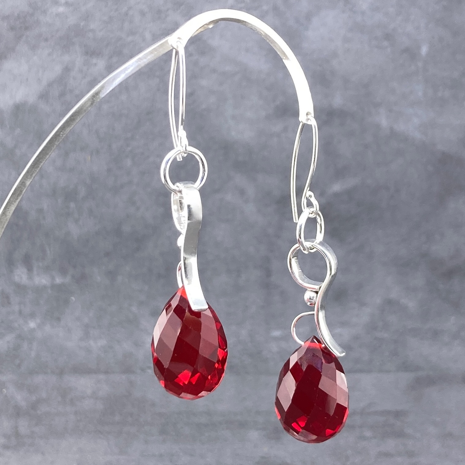 red topaz on wave curl earrings – 50.5 carat