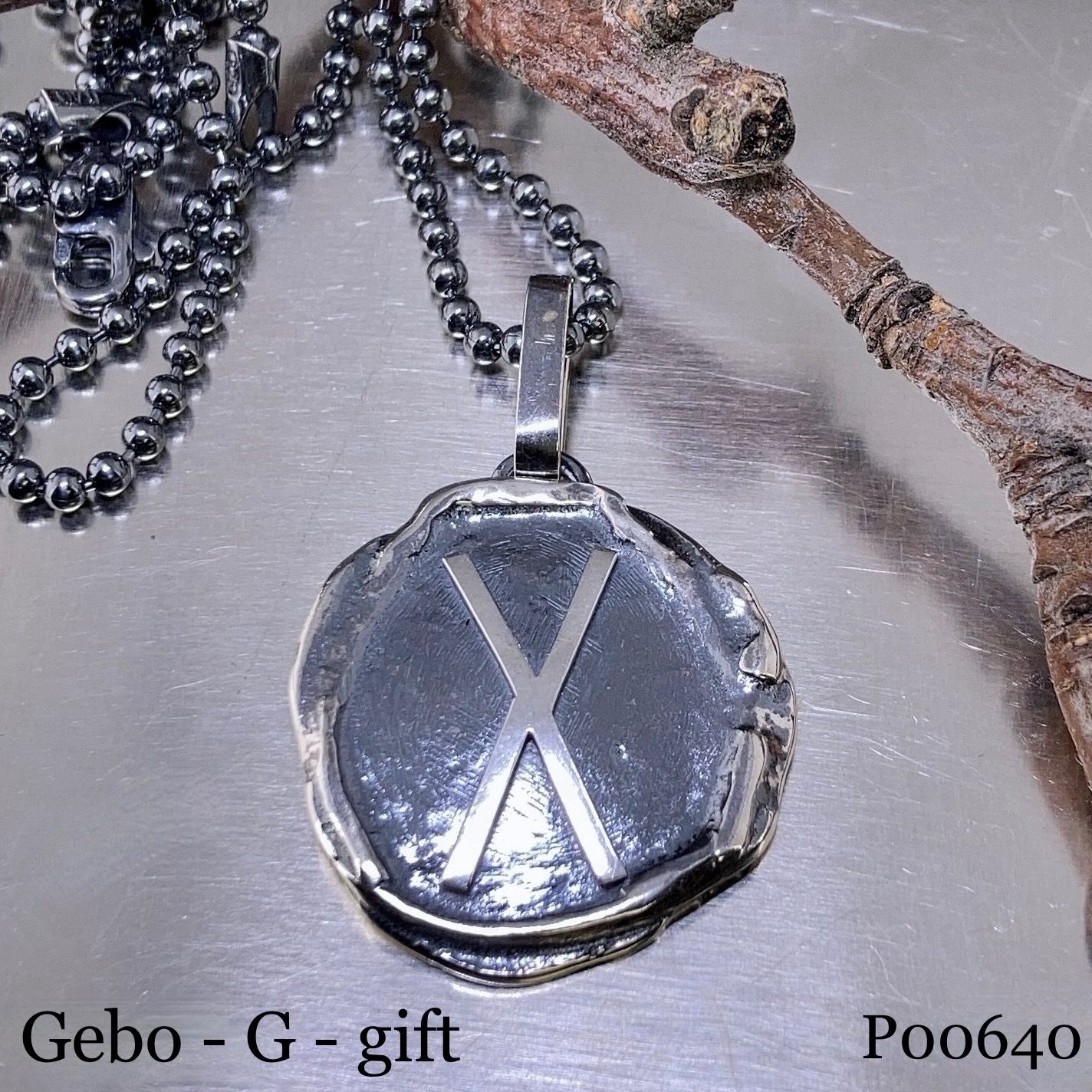 Rune pendant – letter ‘G’ – Argentium silver wax seal – antique