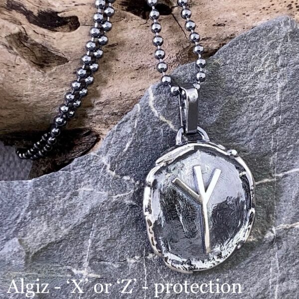 Rune pendant – letter X or Z – Argentium silver wax seal – antique