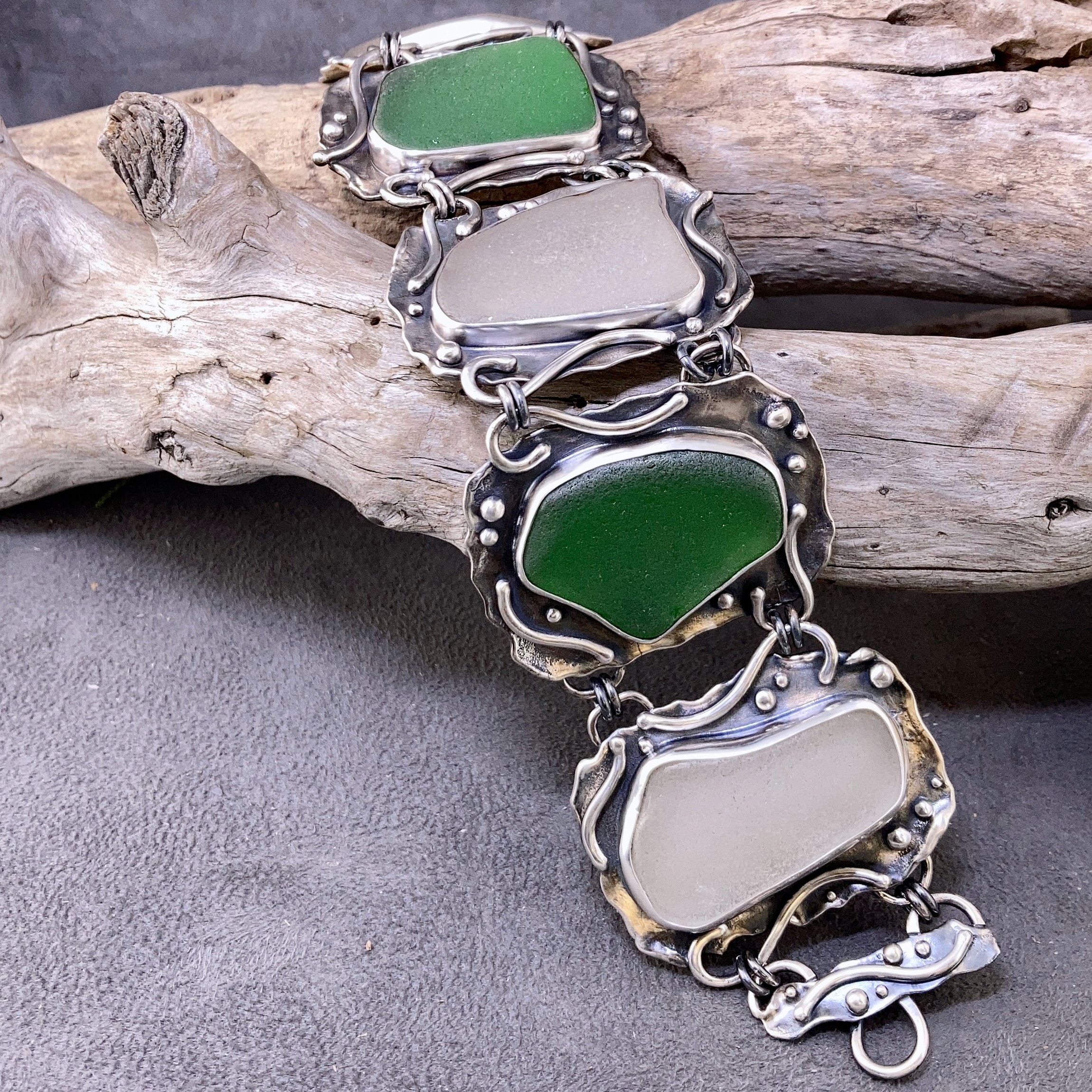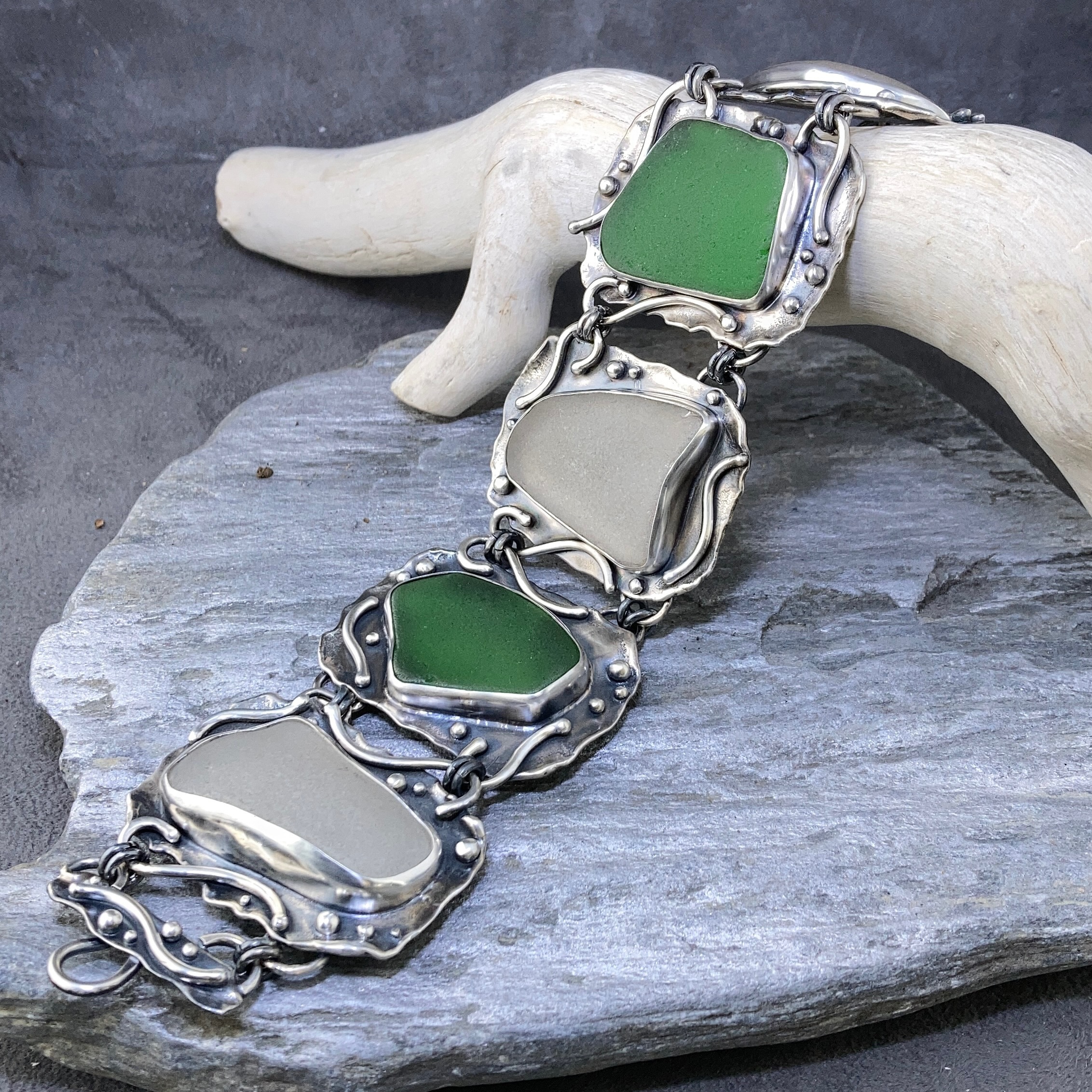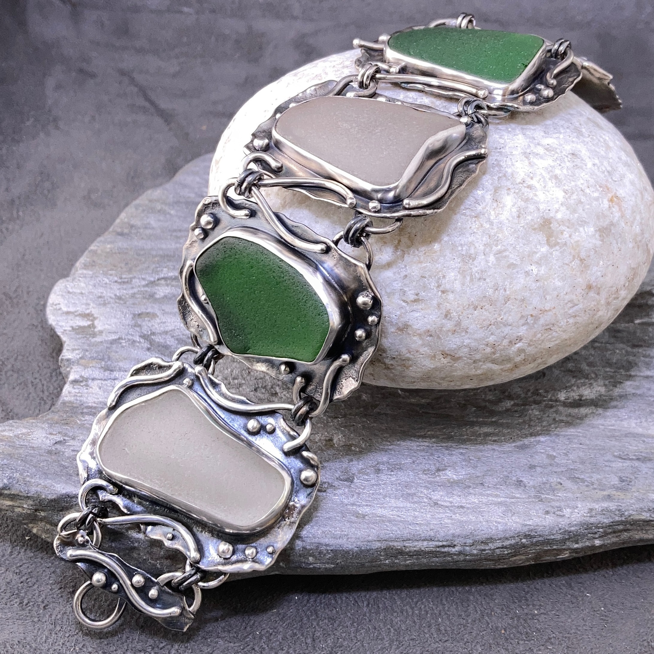 sea glass bracelet - antique Argentium silver waves - Image 4