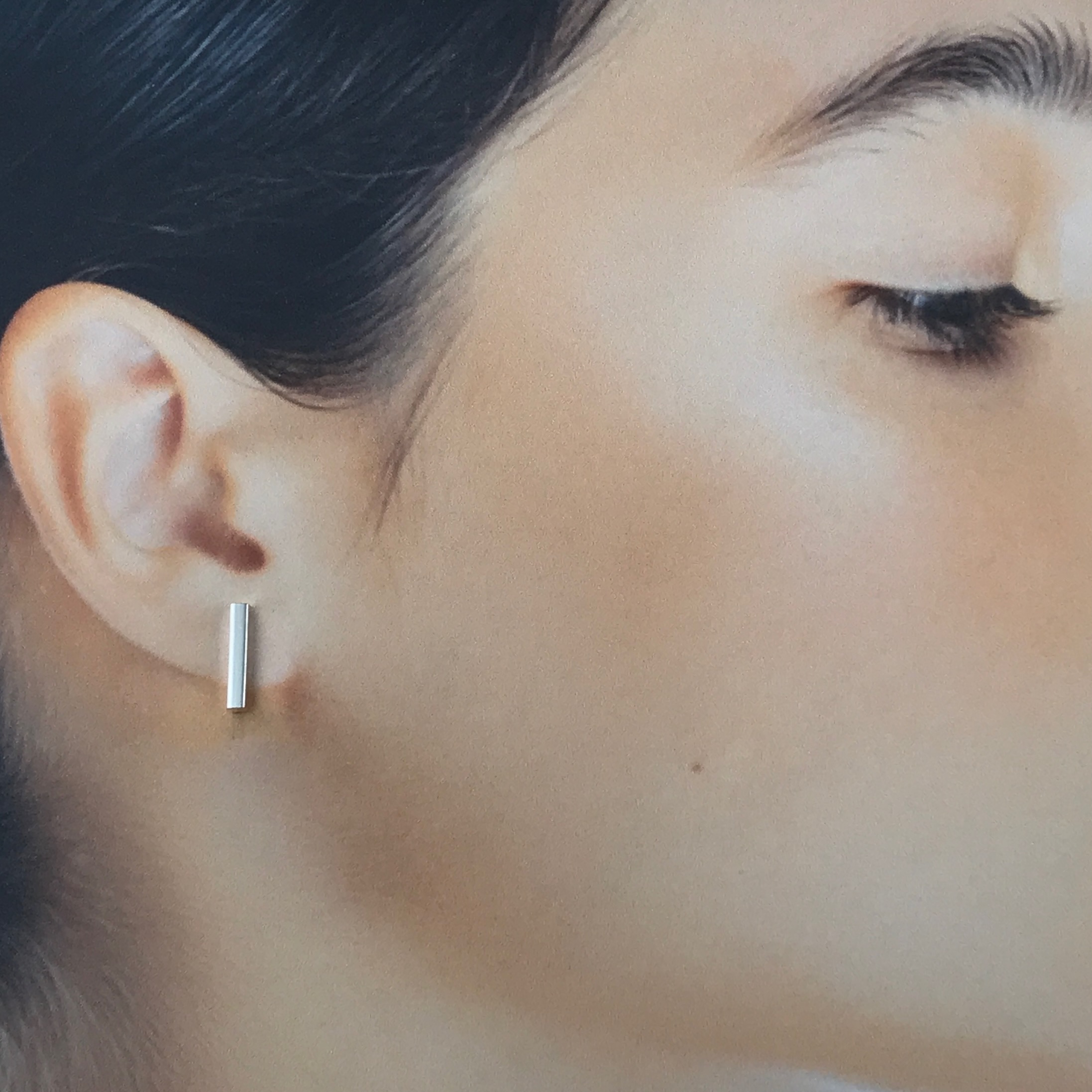 Short minimalist bar post earrings in Argentium silver.