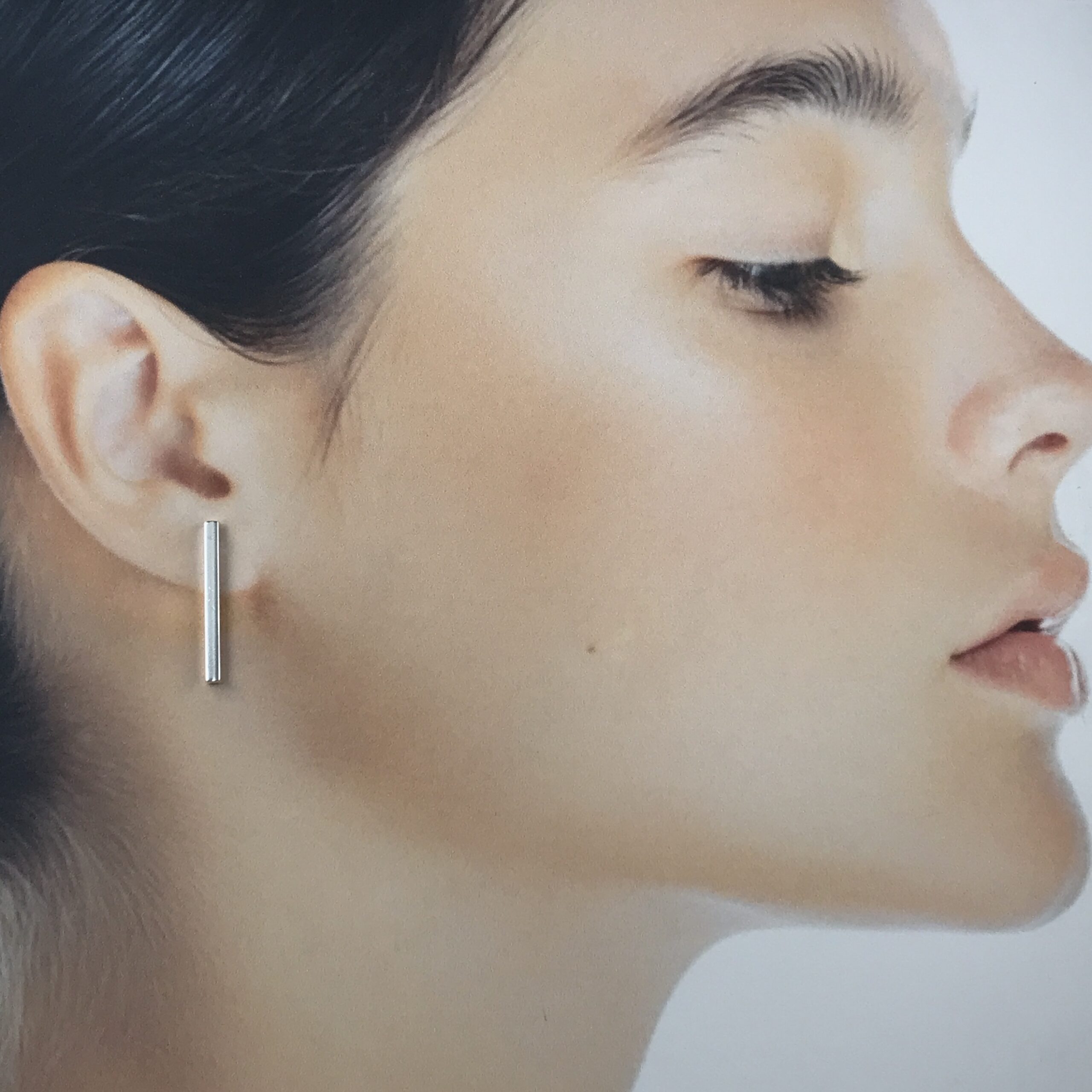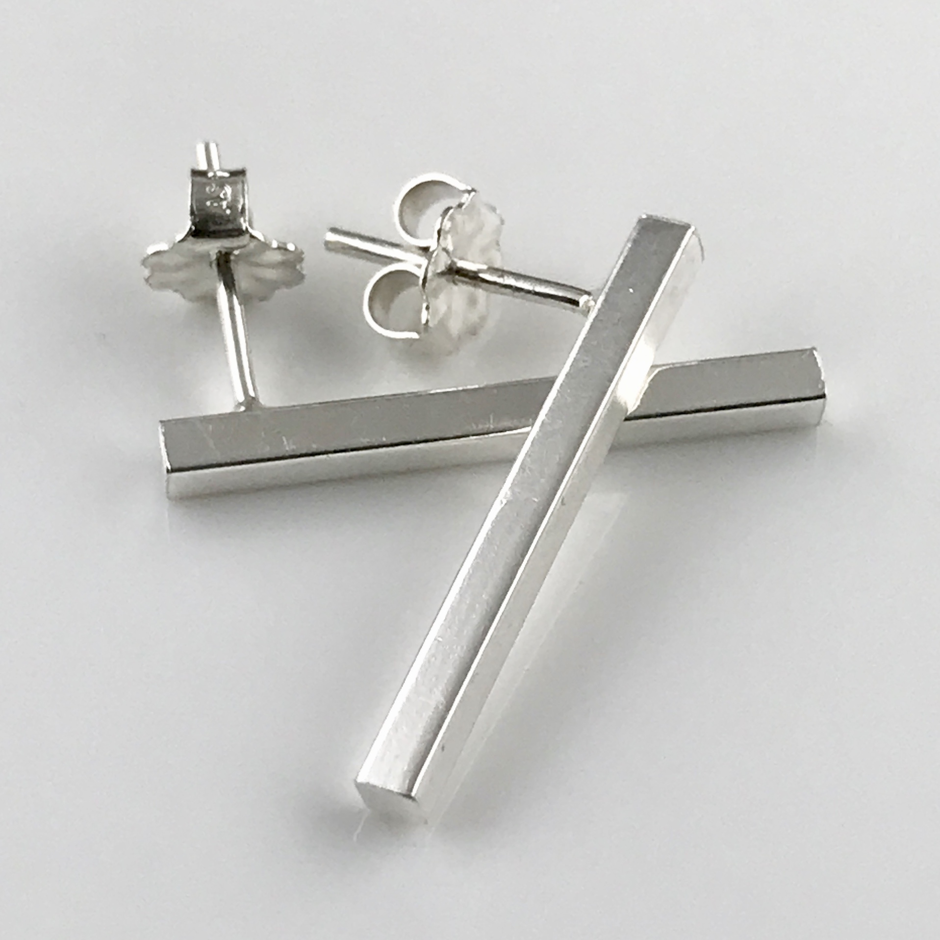 I make the short bar earrings in 2 sizes. These ones are the long ones. The two short-bar earrings look great worn together.