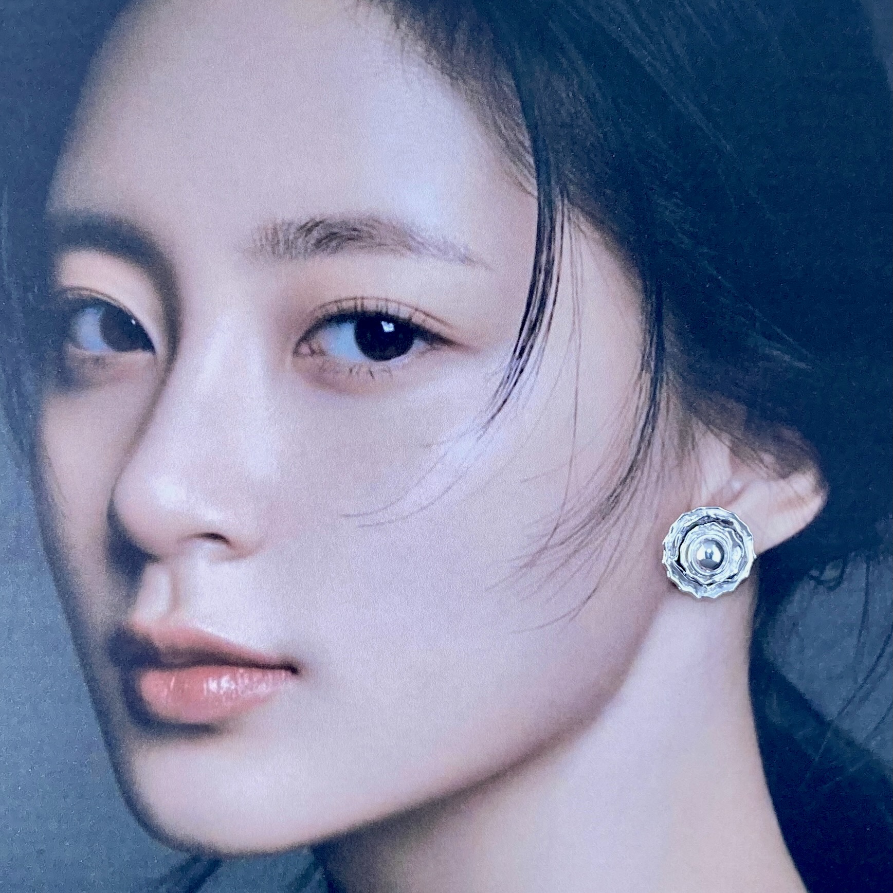 These are 5 part earrings – the post and the butterfly – with their optional flower petals to layer on. The middle size petal is antiqued to add dimension – all are solid Argentium silver that I gently melted to create a soft flowing edge. The petals can be worn all together to create a layered flower, or the post by itself.  With no flower at all it is just a nice granule earring.  And any combination in-between.  This earring has 3 individual petals with a large Granule post.