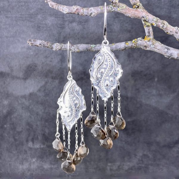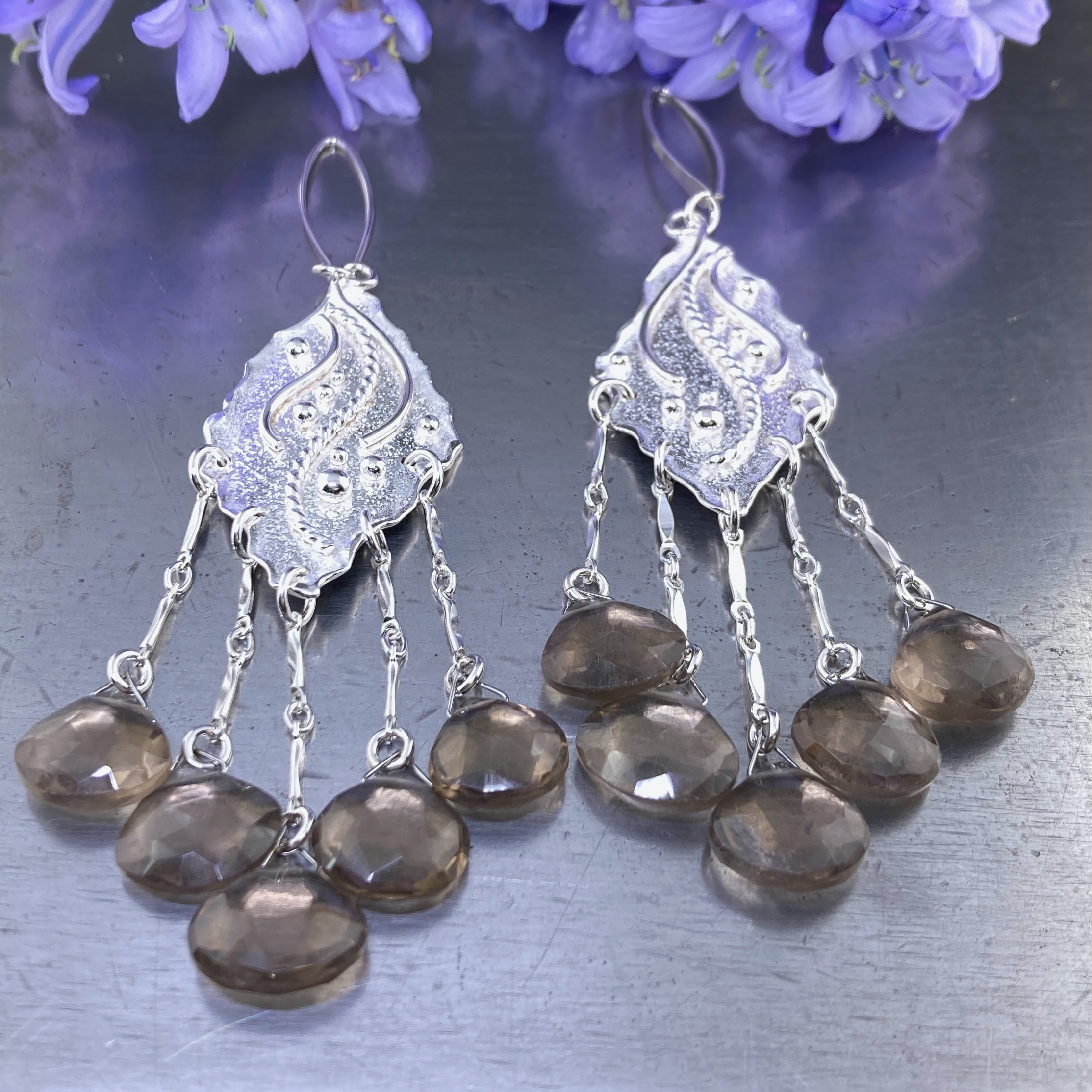smoky quartz earrings - chandelier - Argentium silver - Image 3