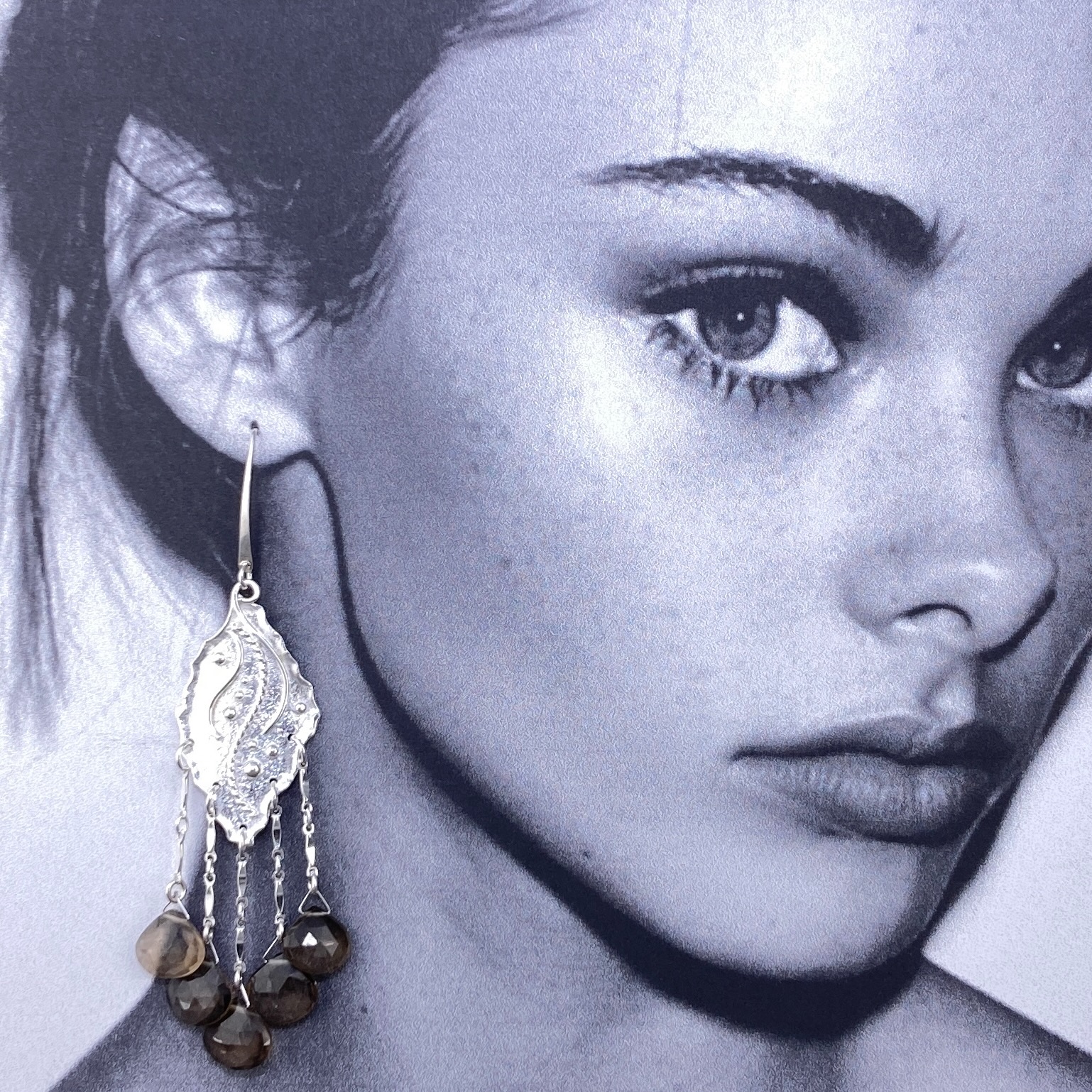 smoky quartz earrings - chandelier - Argentium silver - Image 4