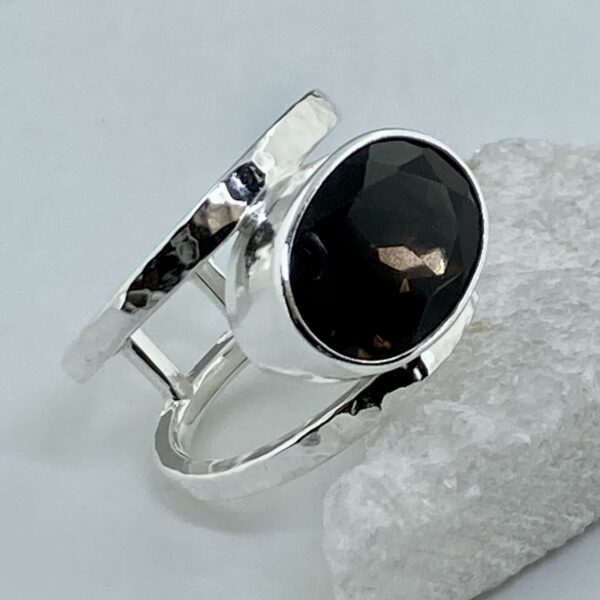 Smoky Quartz Ring – Size 10.25 – Argentium Silver Double Band – 7.5 Carat - Image 2