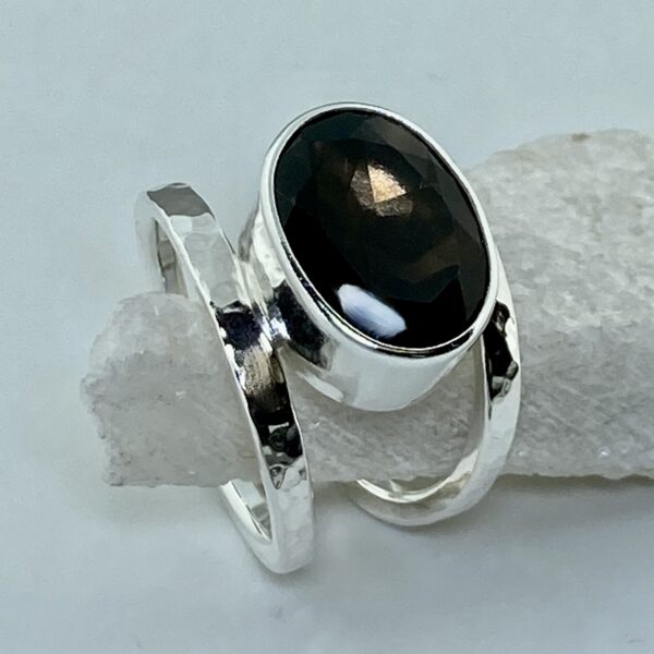 Smoky Quartz Ring – Size 10.25 – Argentium Silver Double Band – 7.5 Carat - Image 3
