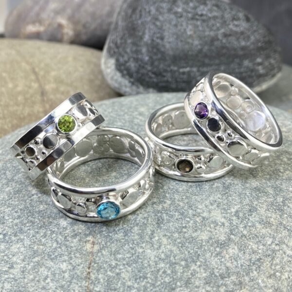 Each ring is handmade in Argentium 940 silver using a series of fused granules that are later flattened for a smooth yet detailed finish. The small openings between the granules allow the skin to breathe, making this design both durable and comfortable. It feels solid in hand but light enough for daily wear.