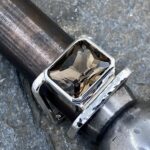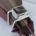 smoky quartz ring – size 12 – Argentium silver square double-band – 14.5 carat
