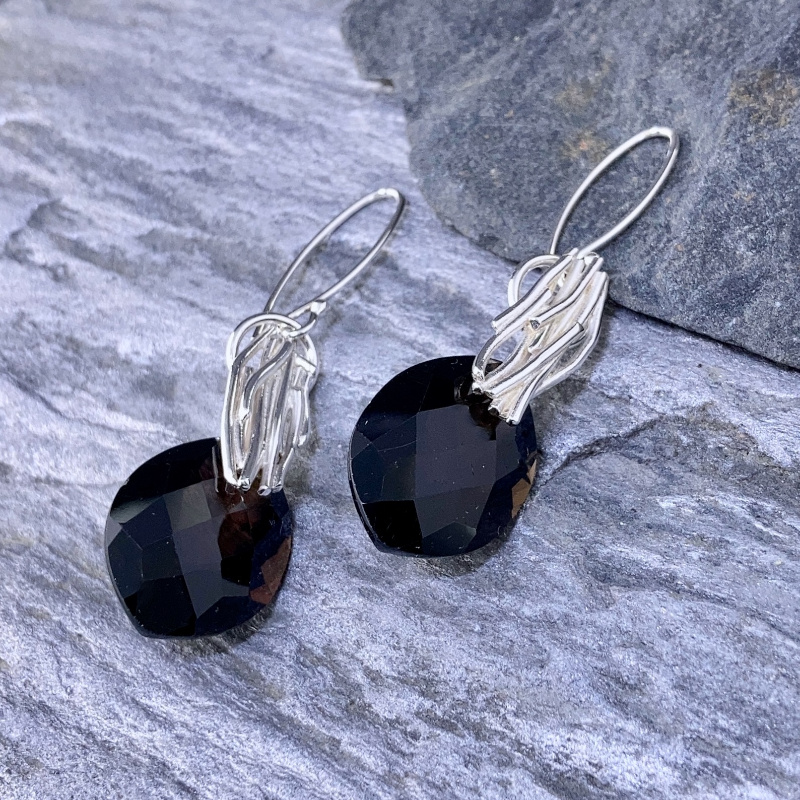 smoky quartz earrings – twig cap – Argentium silver – 23 carat