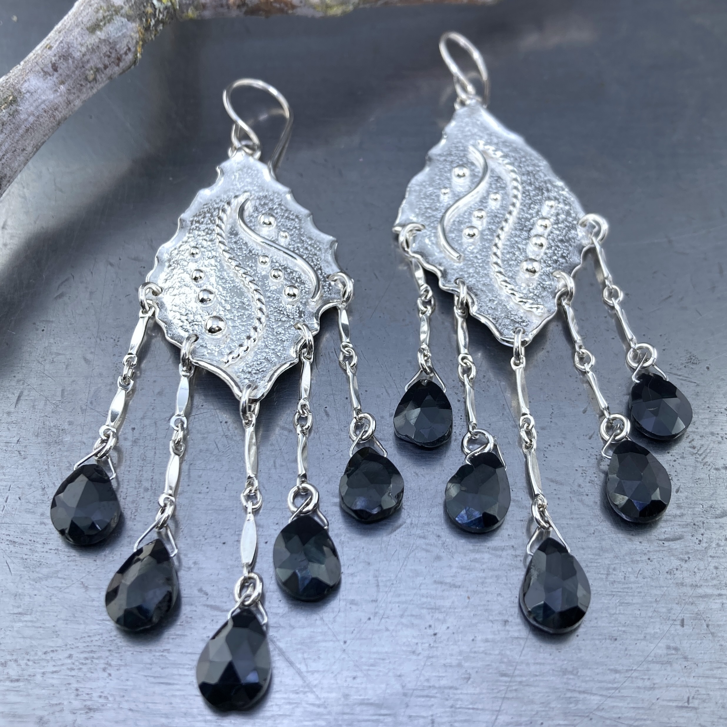 These Argentium silver pieces have been textured, edges rolled, waves and granules soldered on, dapped, polished, work hardened and baked.