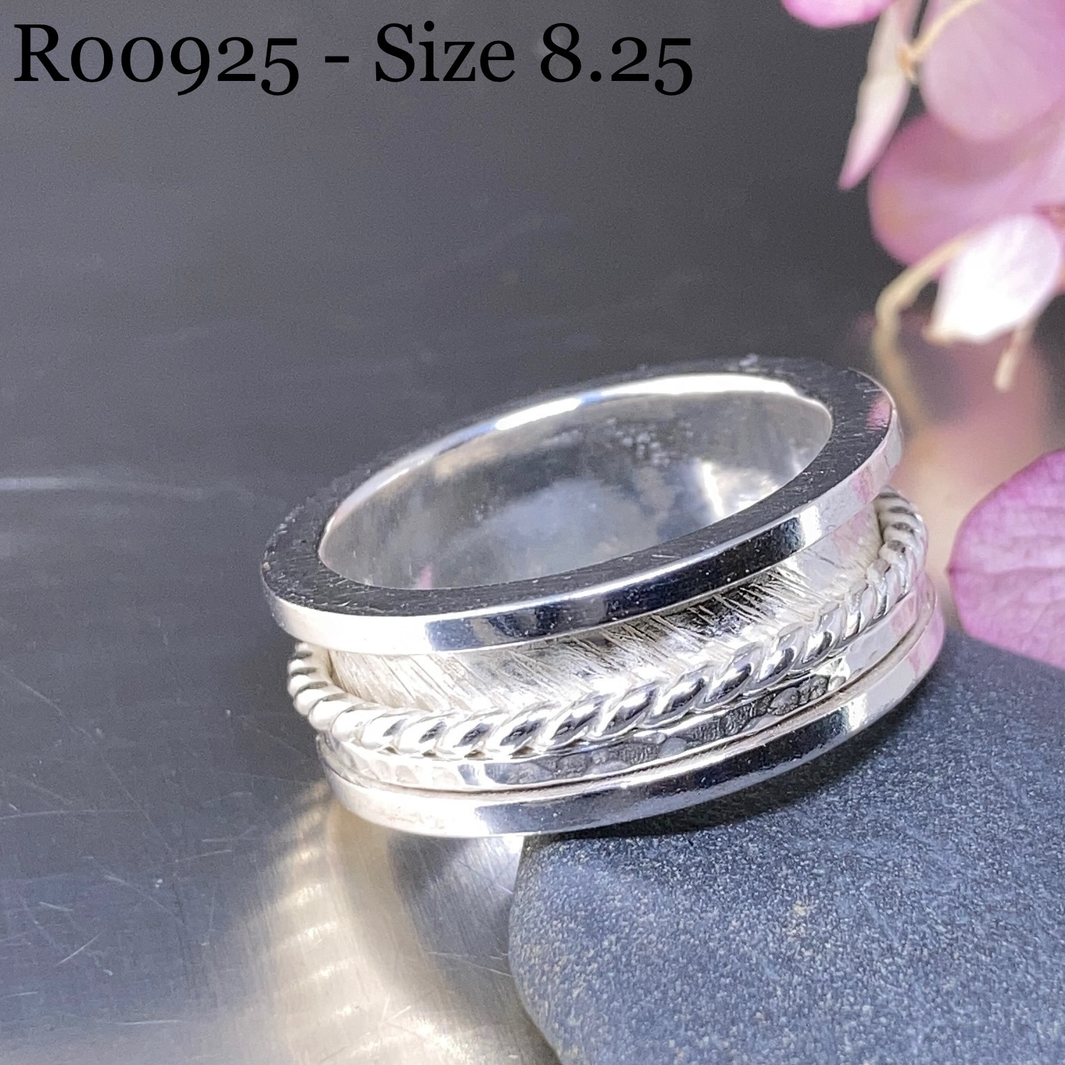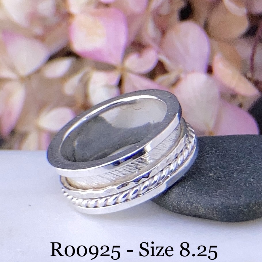 spinner ring – finished edge – size 8.25 – Argentium silver