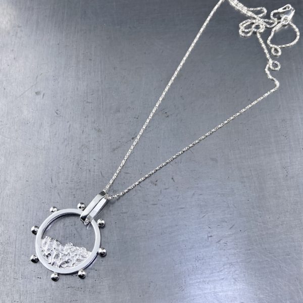Included with the pendant is an 18″ Sterling Silver Twisted box chain