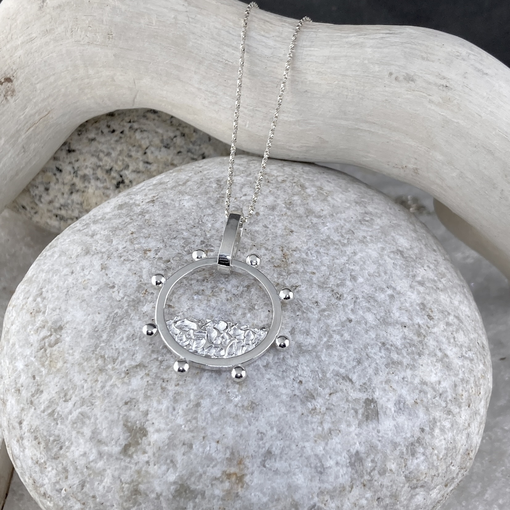 Sun and moon – nautical design. Handmade in Argentium silver.