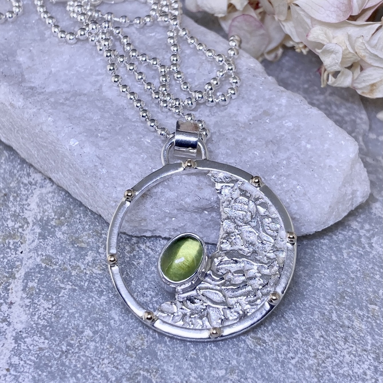 Peridot Sun and Moon Pendant – Argentium Silver – 2 Carat