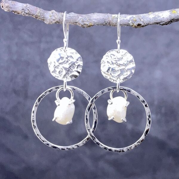 Earrings are 5.2 cm long by 2.6 cm wide. They weigh 8.7 grams.