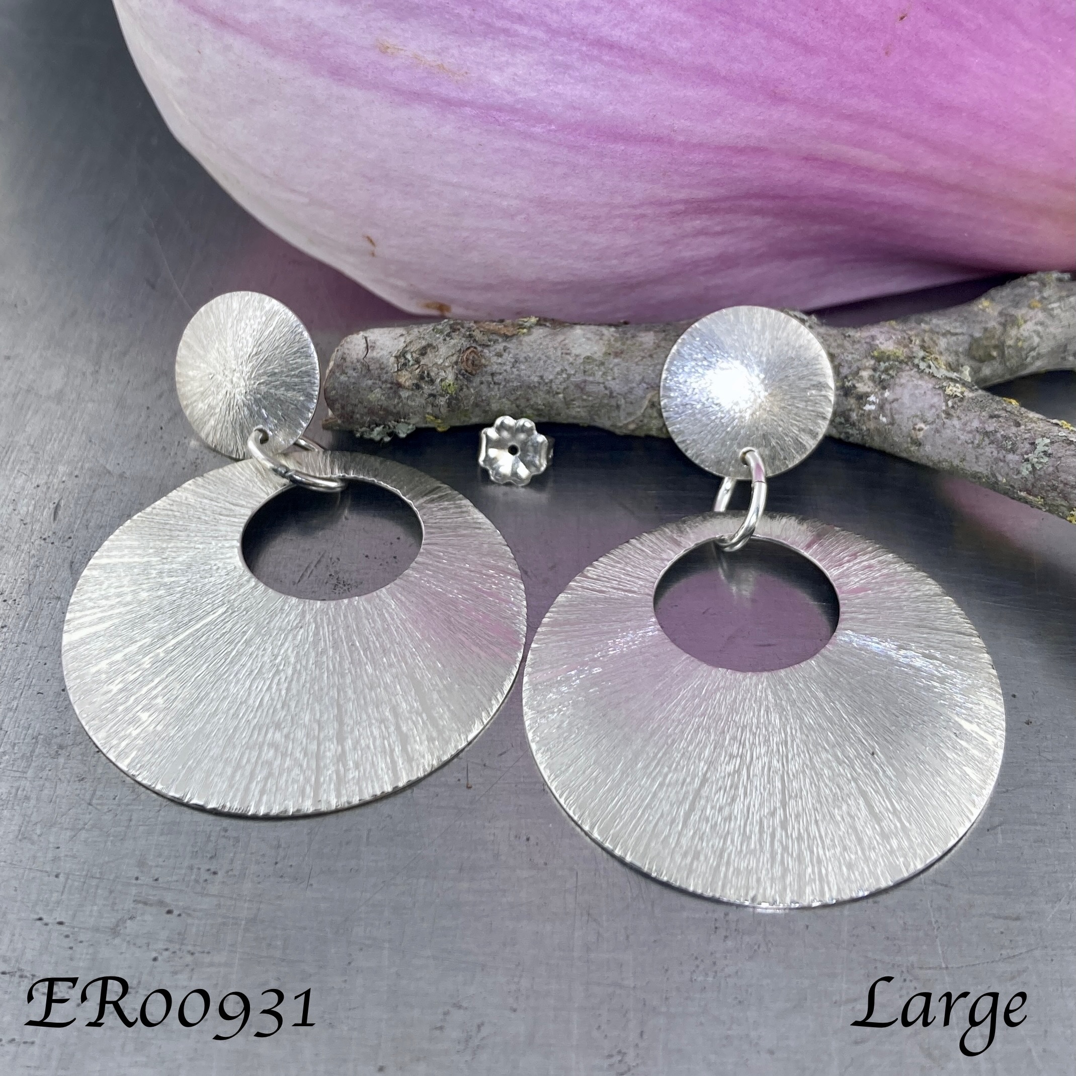 Large – earrings are 4.6 cm long by 3.2 cm wide.  They weigh 7.2 grams.