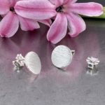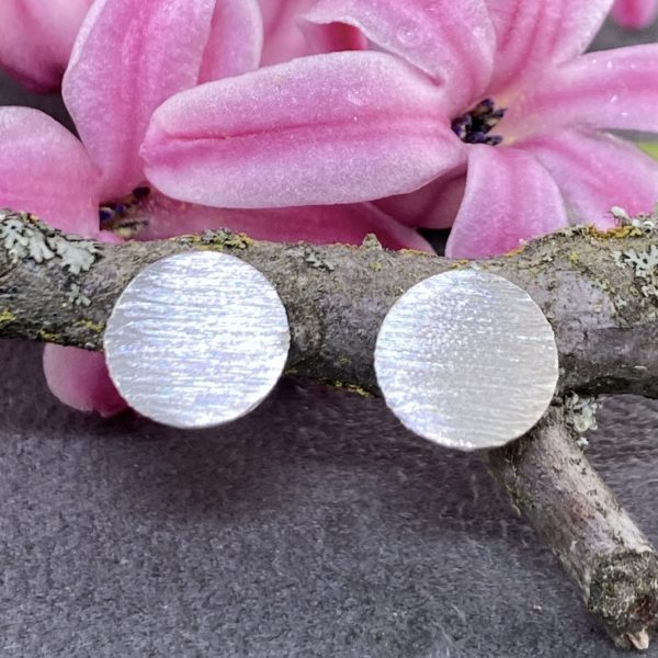 moon earrings – etched post – Argentium silver