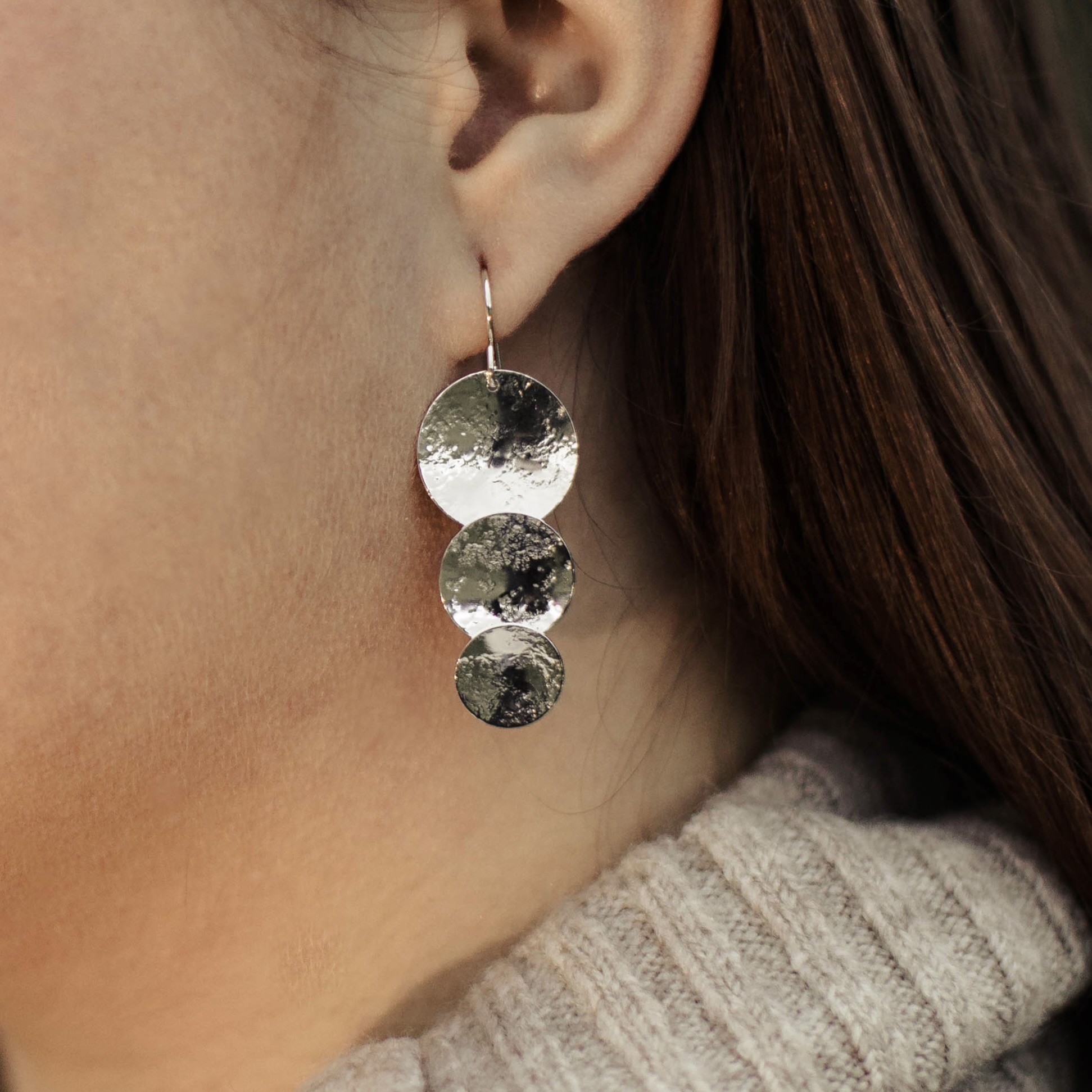 moon earrings - 3 stacked - Argentium silver - Image 3
