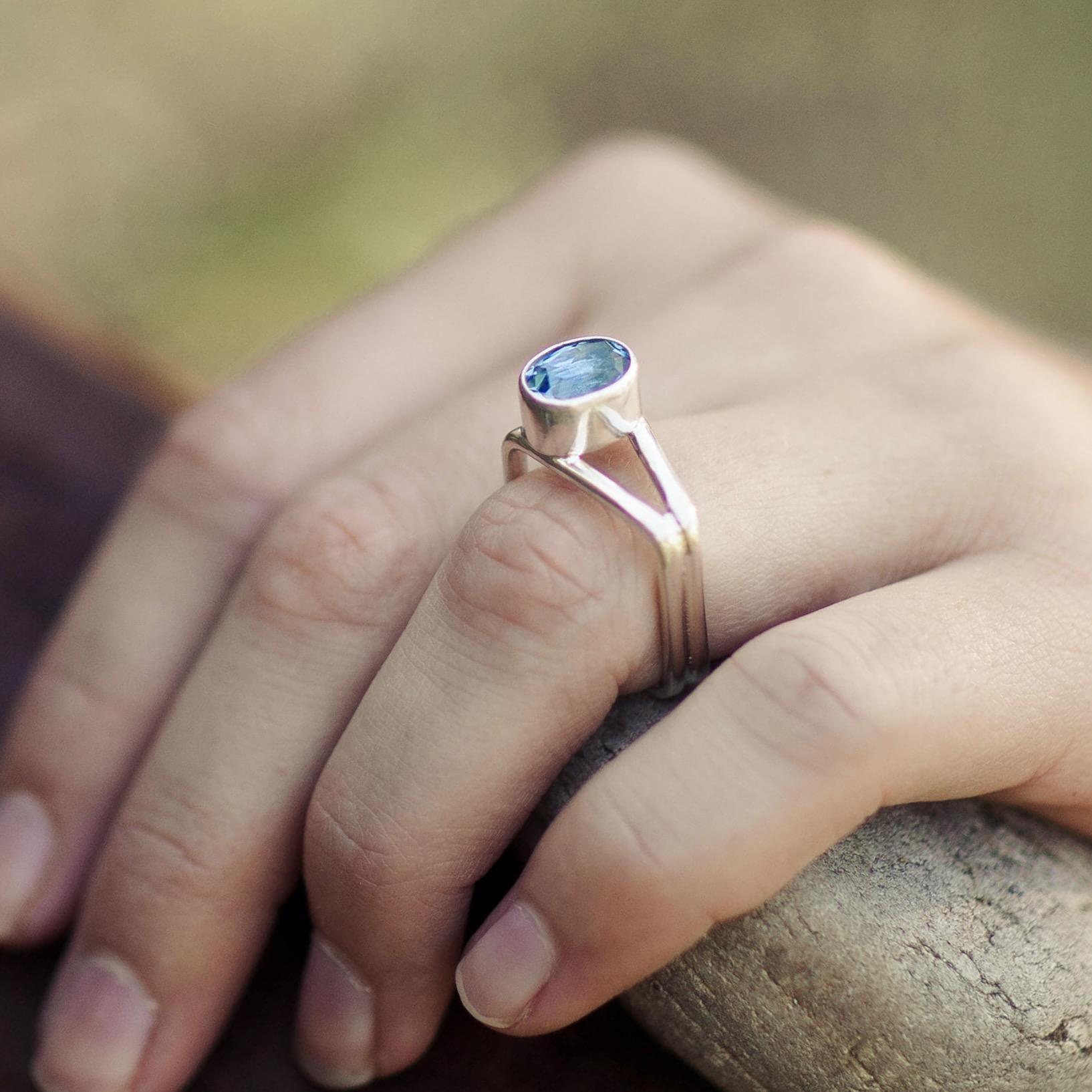 The Book design celebrates structure and form. I craft each ring in solid Argentium 940 silver, shaping the top edge to lift the gemstone slightly forward — a strong, architectural gesture that still feels comfortable on the hand. The square band sits securely and evenly, offering a smooth fit that resists spinning.