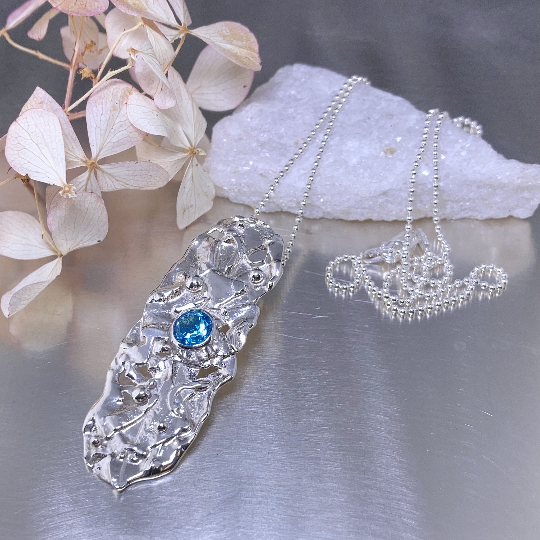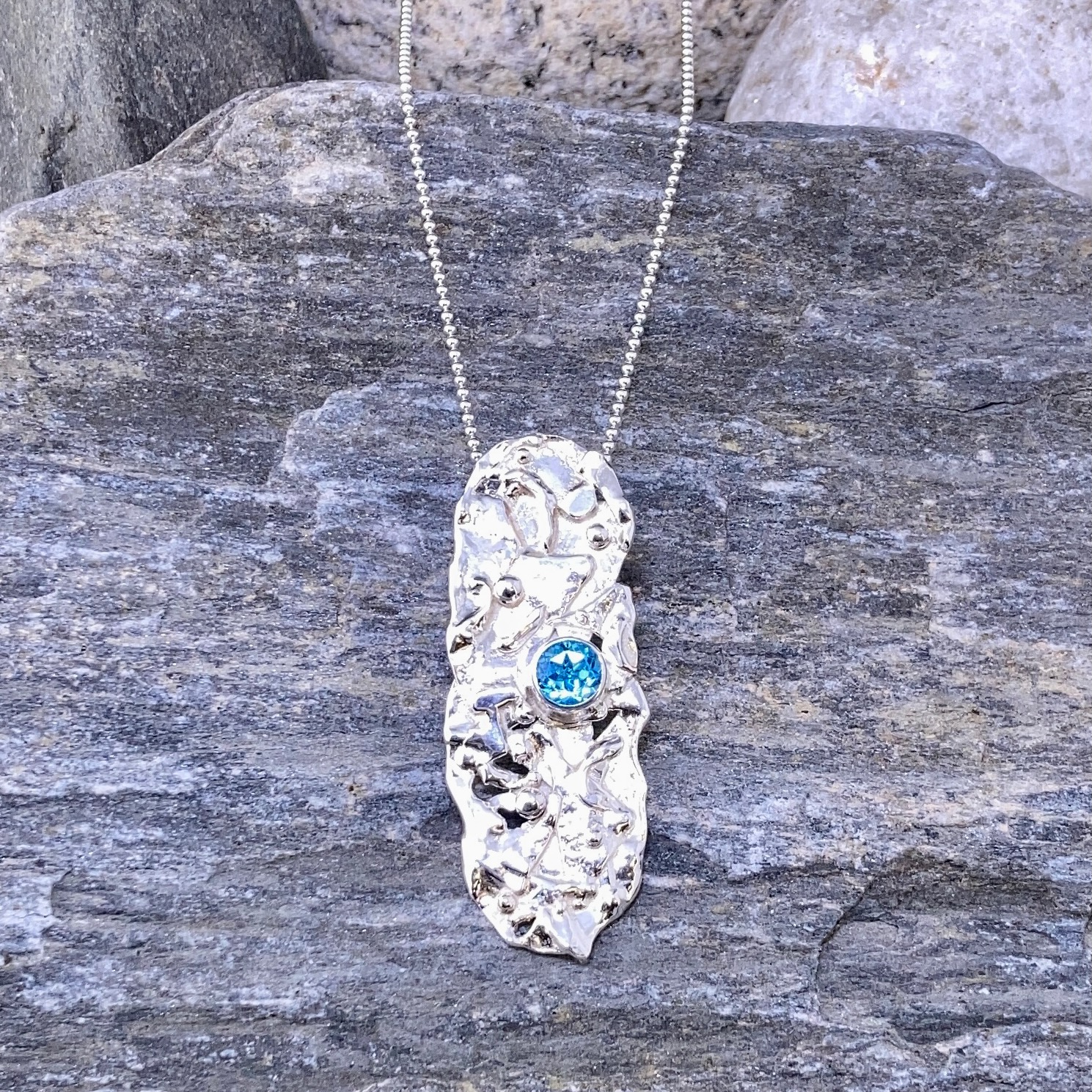 Swiss topaz pendant – Argentium silver rapids – 1 carat